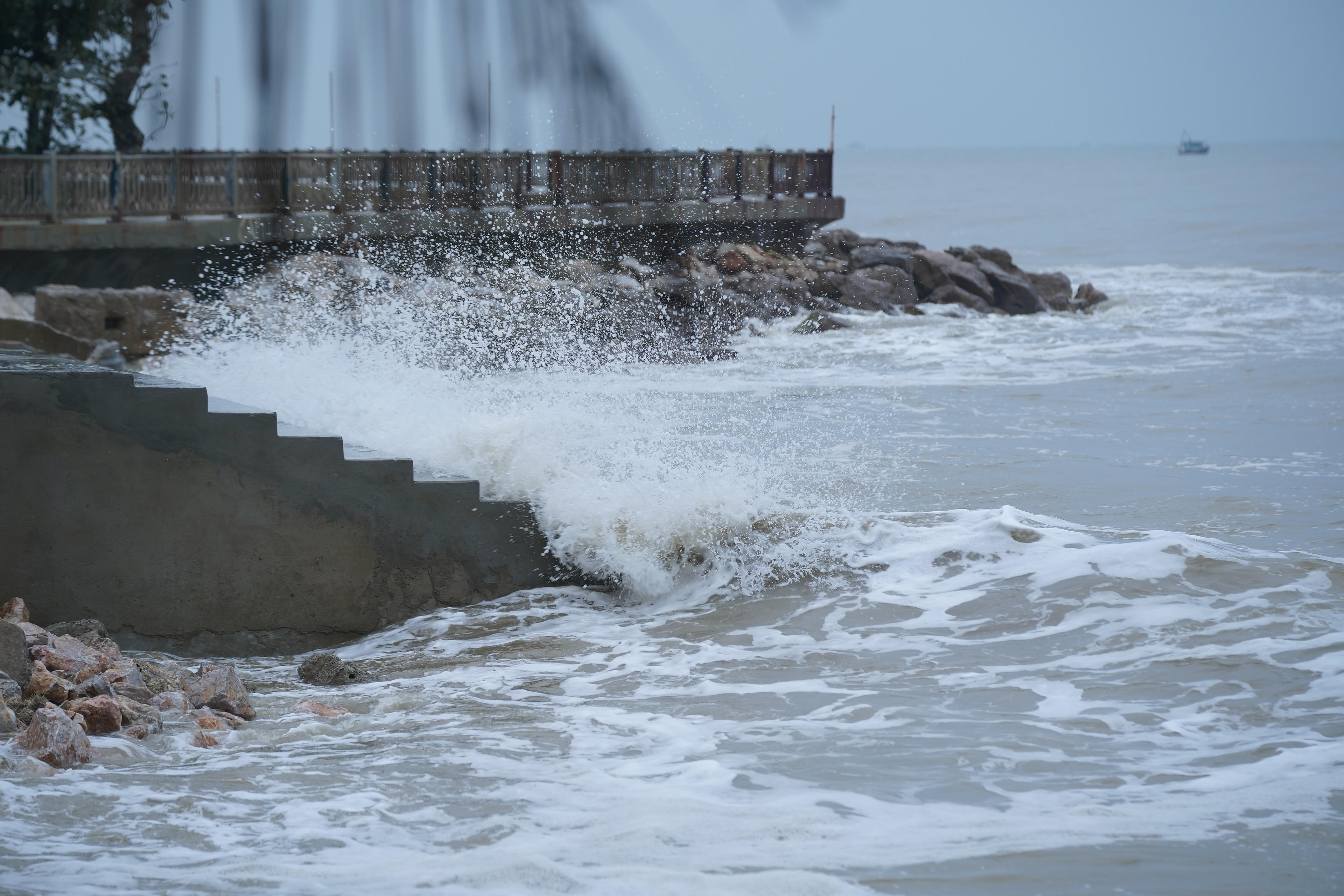 Sóng mạnh mẽ xô bờ như lời đe doạ con người nhỏ bé - Ảnh: Hương Giang |