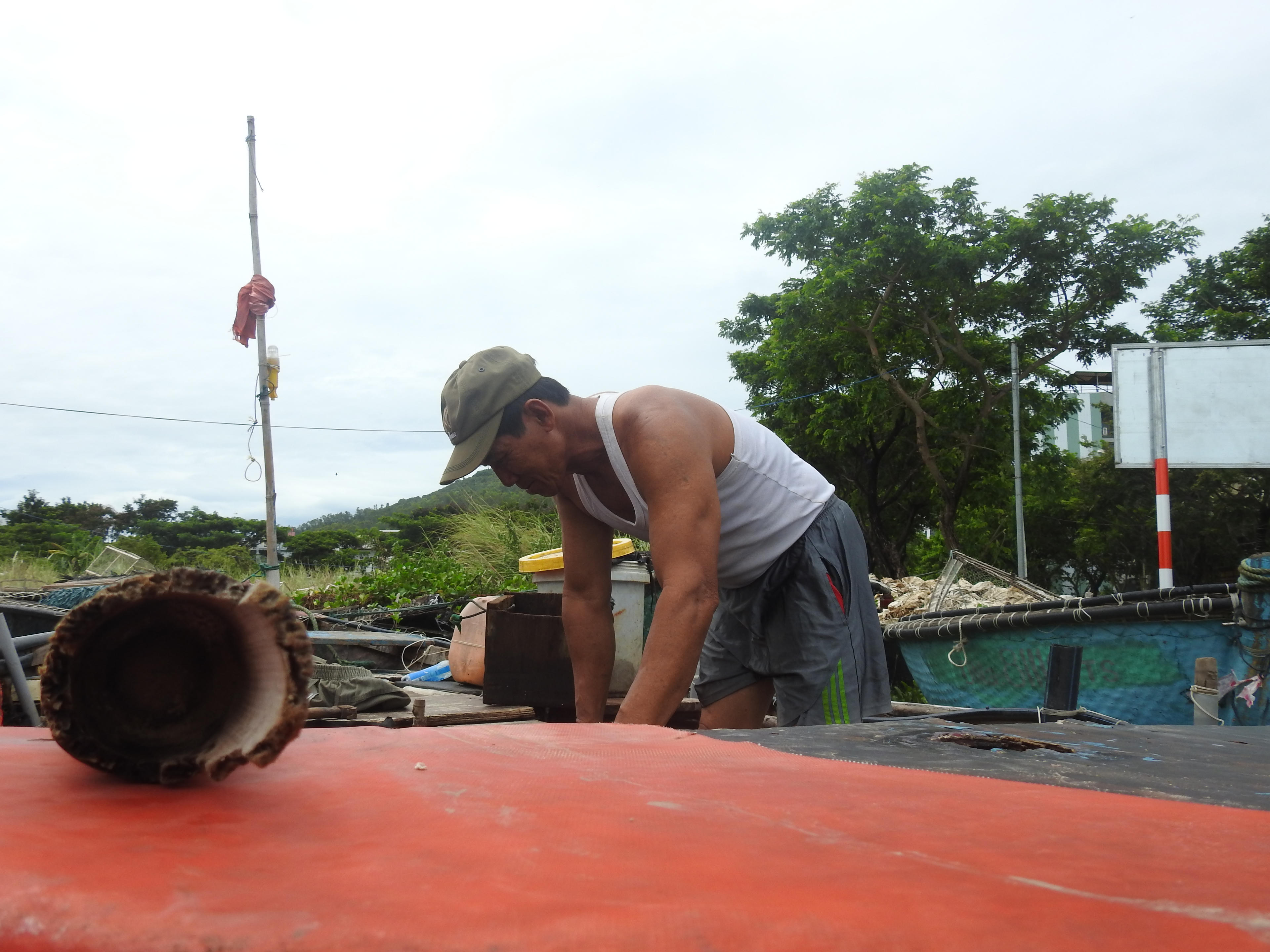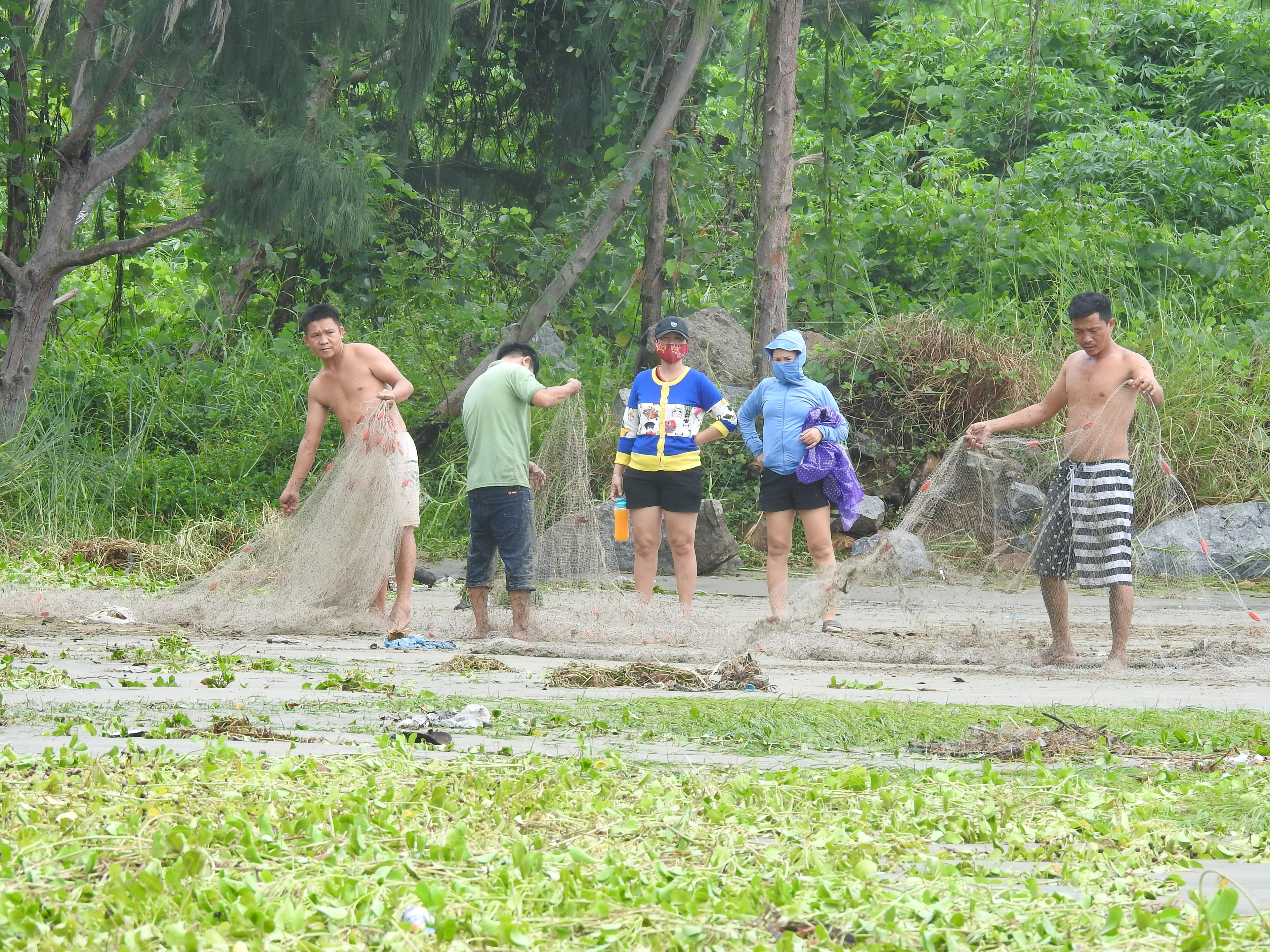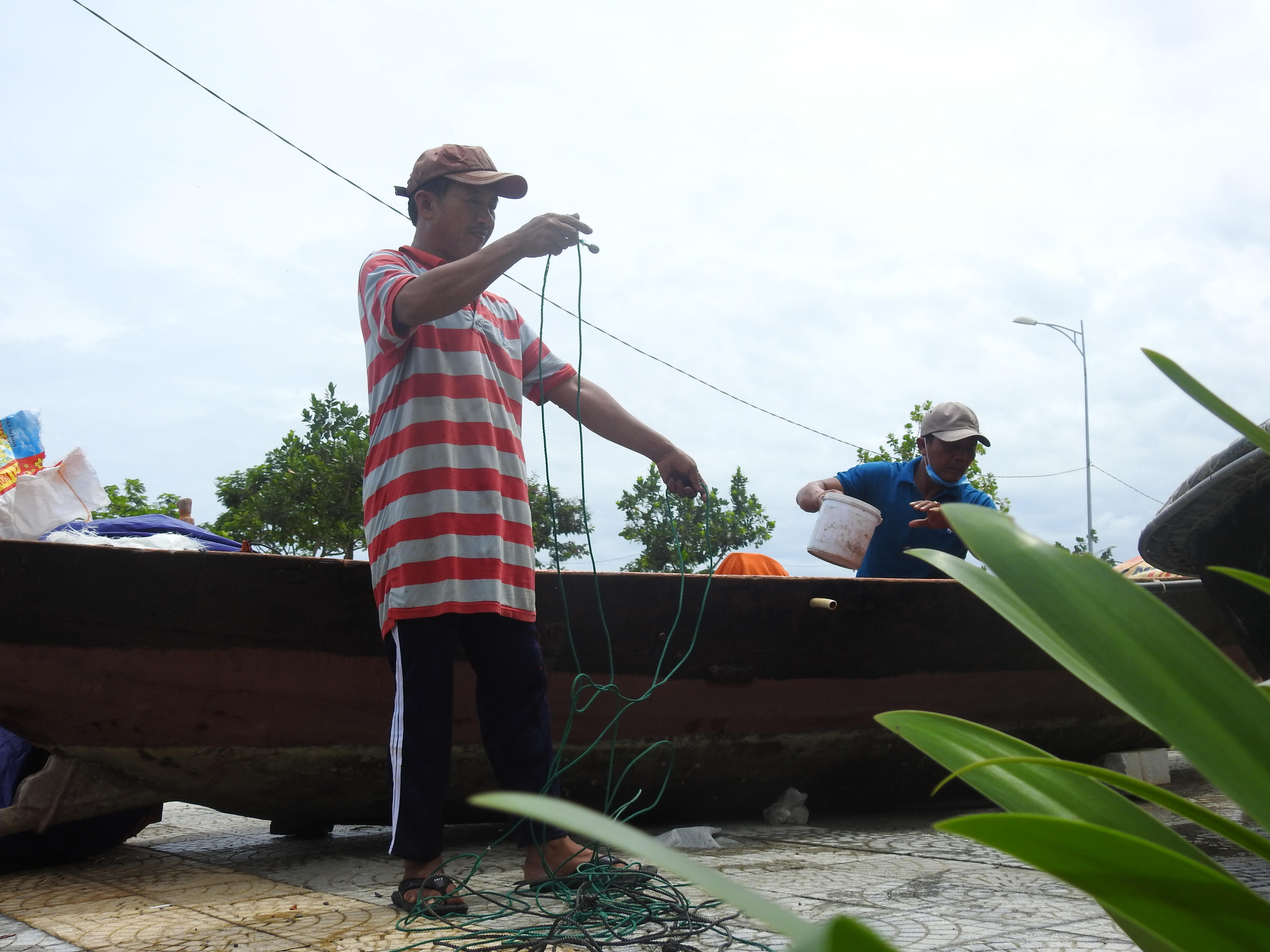 Ngư dân Đà Nẵng sửa sang thuyền bè, bắt cá bên bờ ngay sau bão