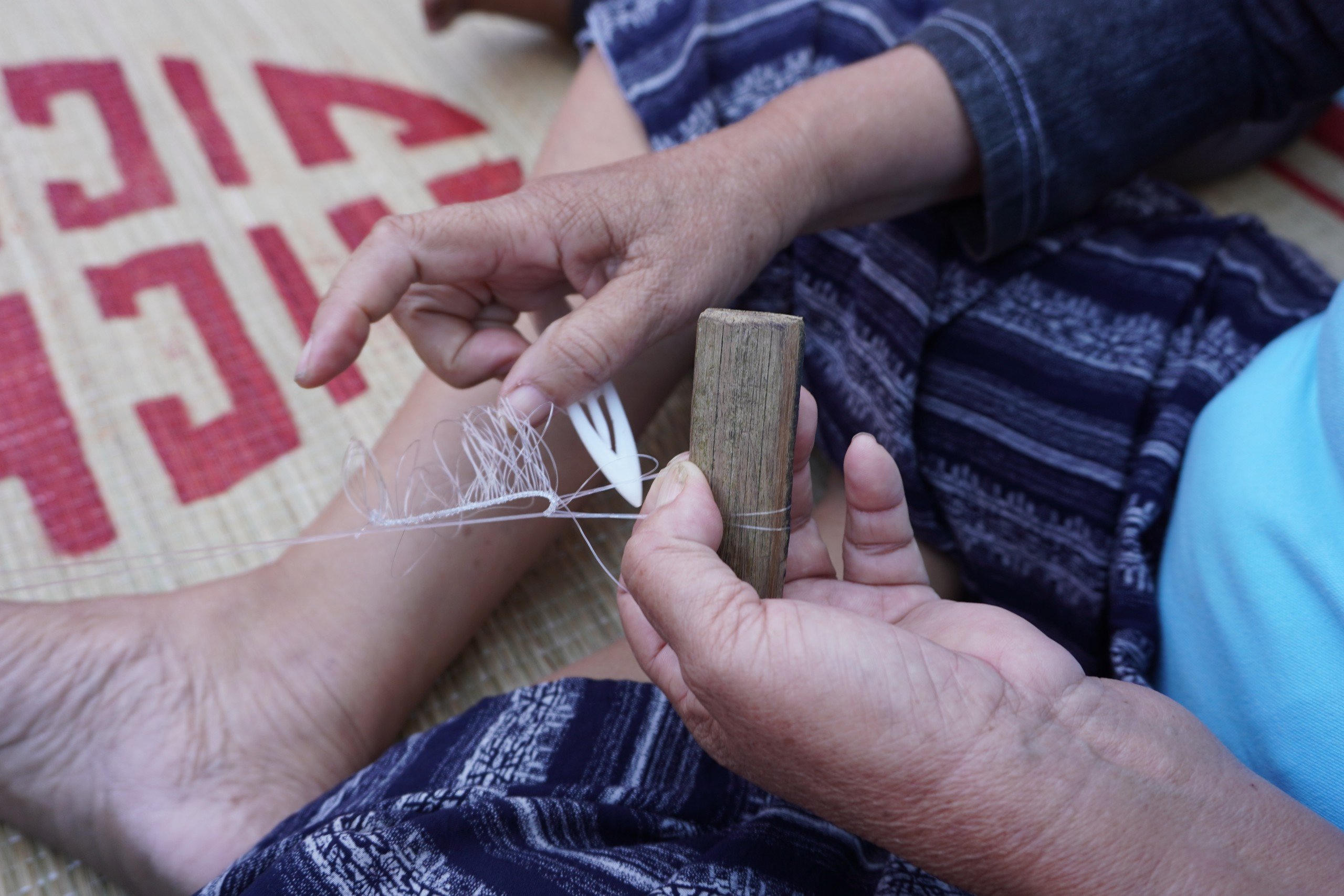 Đôi bàn tay khéo léo trong phần thi đan lưới.