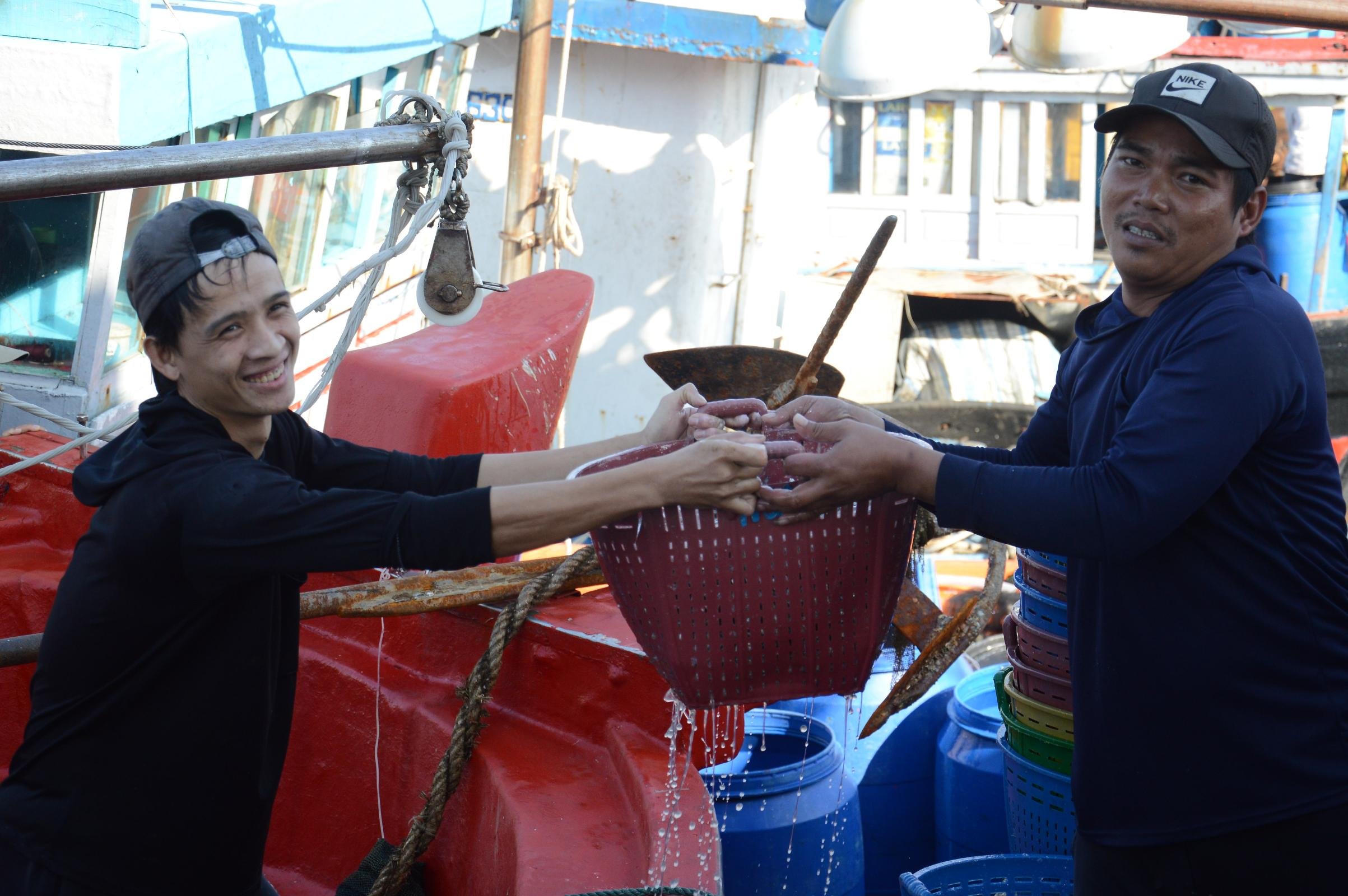 “Trung bình mỗi ngày tàu cá tôi có thể kéo được từ 1 đến 3 tấn cá cơm, giá cá cơm dao động từ 10 nghìn đồng đến 15 nghìn đồng, giá thấp hơn so với mọi năm trước nhưng do trúng sản lượng lớn nên tôi và ngư dân khác ở địa phương rất vui mừng, phấn khởi”, ngư dân Nguyễn Khải phấn khởi chia sẻ.