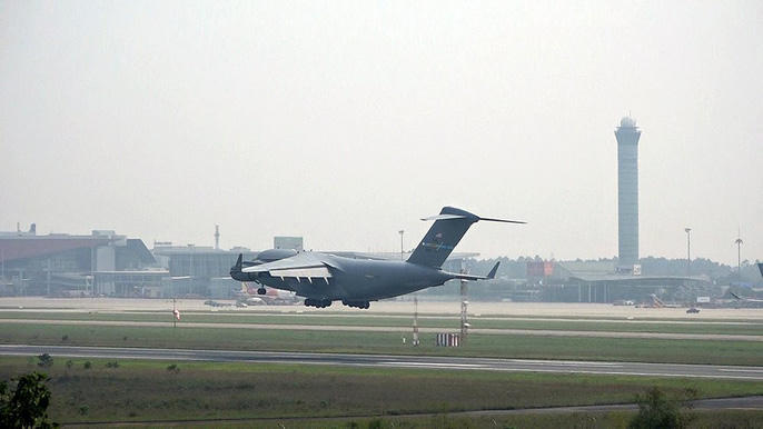 'Ngựa thồ' C-17 chở trực thăng của ông Trump đến Nội Bài
