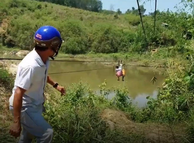 “Mùa mưa qua sông bằng thuyền nguy hiểm lắm vì nước sông chảy xiết, rất dễ lật. Biết qua sông bằng cáp treo sẽ nguy hiểm đến tính mạng nếu gặp sự cố không may, nhưng dù sao cũng an toàn hơn bằng thuyền. Cả chục năm nay tôi thấy đi cáp treo này rất tốt. Nó chắc chắn chứ không xảy ra sự cố gì”, bà Lành nói.