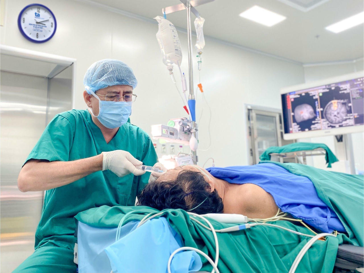 Đặc biệt, các loại thuốc dùng với liều lượng được tính toán kỹ, đảm bảo người bệnh tỉnh táo trong lúc mổ nhưng không cảm thấy đau, không nôn ói, không động kinh, cơ thể và thần kinh sẽ ổn định nhất trong và sau mổ. “Nếu không giảm đau và kiểm soát các chức năng thần kinh, vận động tốt, người bệnh có nguy cơ bị kích động, lo sợ, đau, cựa quậy trong lúc mổ, ảnh hưởng đến thao tác của phẫu thuật viên và nguy cơ phù não nguy hiểm”, bác sĩ Khương đánh giá.