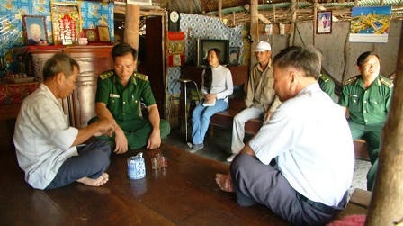 | lHội Người cao tuổi xã Bình Hòa Tây, huyện Mộc Hóa cùng cán bộ Đồn Biên phòng tuyên truyền quần chúng nhân dân nâng cao vai trò trách nhiệm trong xây dựng và bảo vệ biên giới. |