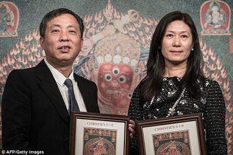 Giờ đây, ông Lưu đã mở hai triển lãm nghệ thuật tại Thượng Hải với số lượng tác phẩm nghệ thuật lên tới 2.300. Trong ảnh trên là ông Lưu và vợ tại sự kiện đấu giá tấm thảm 600 năm tuổi của Tây Tạng. Tại cuộc đấu giá này, ông Lưu đã lập một kỷ lục về giá trả cho một tác phẩm nghệ thuật của Trung Quốc, ông đã chi ra số tiền tương đương 1.015 tỉ đồng vào tháng 11 năm ngoái.