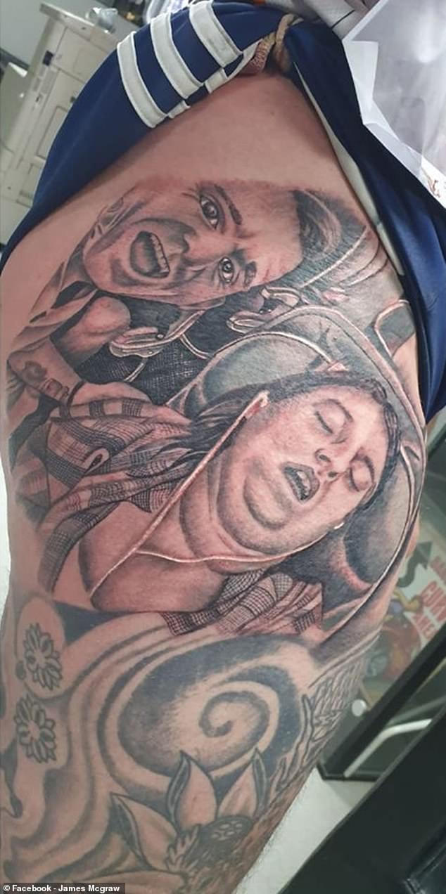 Để trả thù vợ, người đàn ông đã xăm hình cô đang há miệng ngủ lên đùi.