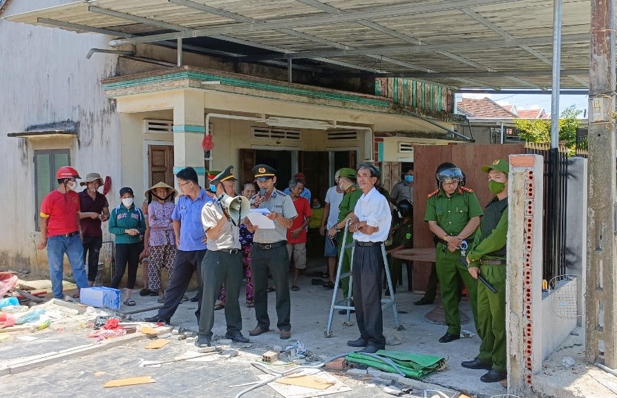 Chấp hành viên Cục THADS tỉnh Quảng Ngãi làm nhiệm vụ. |