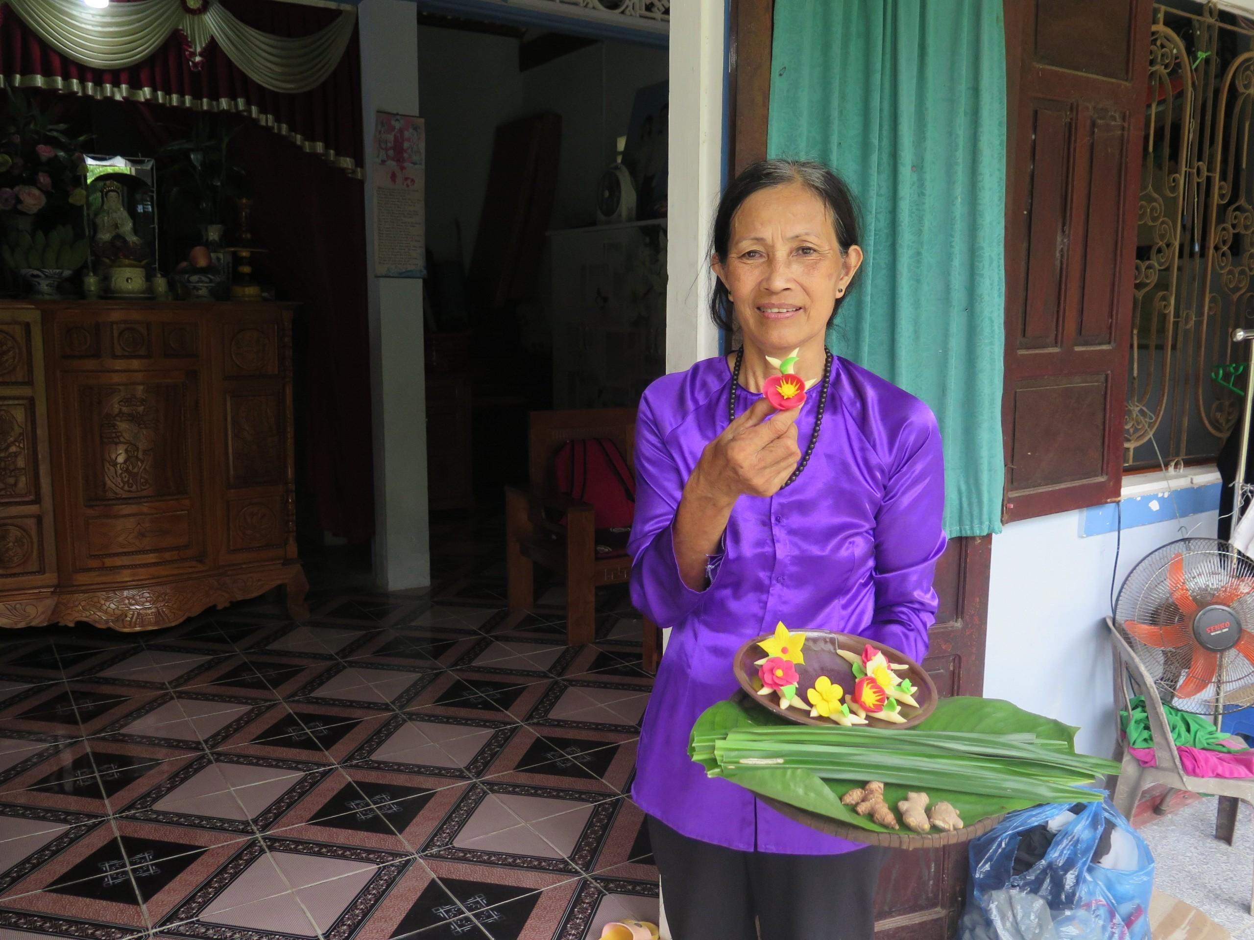 Những lần quảng diễn nghề tại Festival, những khi gánh bánh bông cây trên đôi triêng gióng ra đình làng, khi giới thiệu đến du khách thập phương về những chiếc bánh truyền thống… bà đều say mê. Tuổi cao, bà thôi bỏ bánh bông cây cho chợ Đông Ba đã gần mười năm nhưng vẫn làm cho du khách đến trải nghiệm tại làng cổ.