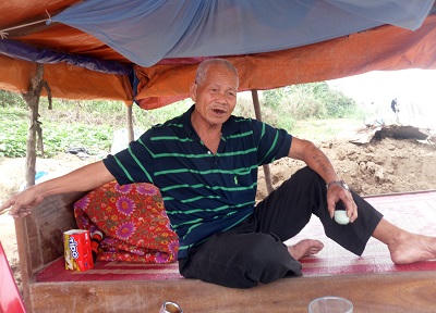 Thời gian đầu, thấy ông tự ý dựng lều ở bến bãi, chính quyền và công an cấm, nhưng sau biết mục đích chính của ông là để quàn thi thể vớt được nên phường Ngọc Thụy đã đồng ý chấp nhận. Từ đó, ngoài chiếc bè nổi lênh đênh thì đôi vợ chồng già có thêm túp lều ven sông để trú mưa, trú nắng.