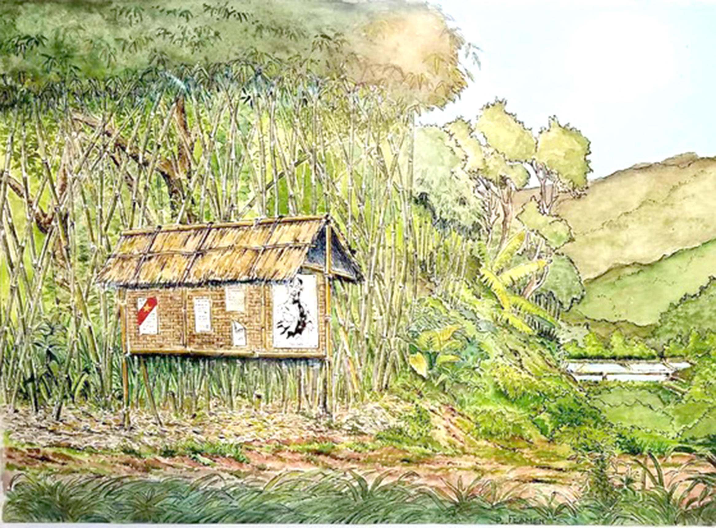 Kèm theo bức tranh chân dung Chủ tịch Hồ Chí Minh, ông Pierre Flamen còn gửi tặng Bảo tàng Hồ Chí Minh bản phác họa địa điểm nơi tìm thấy bức tranh do ông nhớ và vẽ lại cách đây 10 năm.