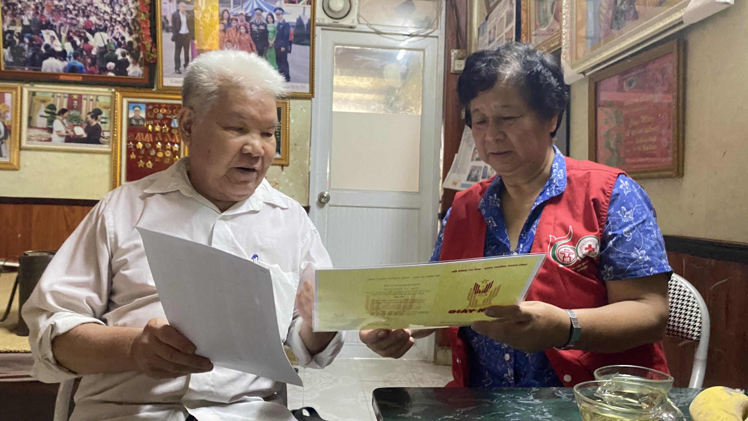 Không chỉ vận động con cháu, ông và vợ tất bật ngược xuôi vận động bạn bè, họ hàng cùng hiến máu.