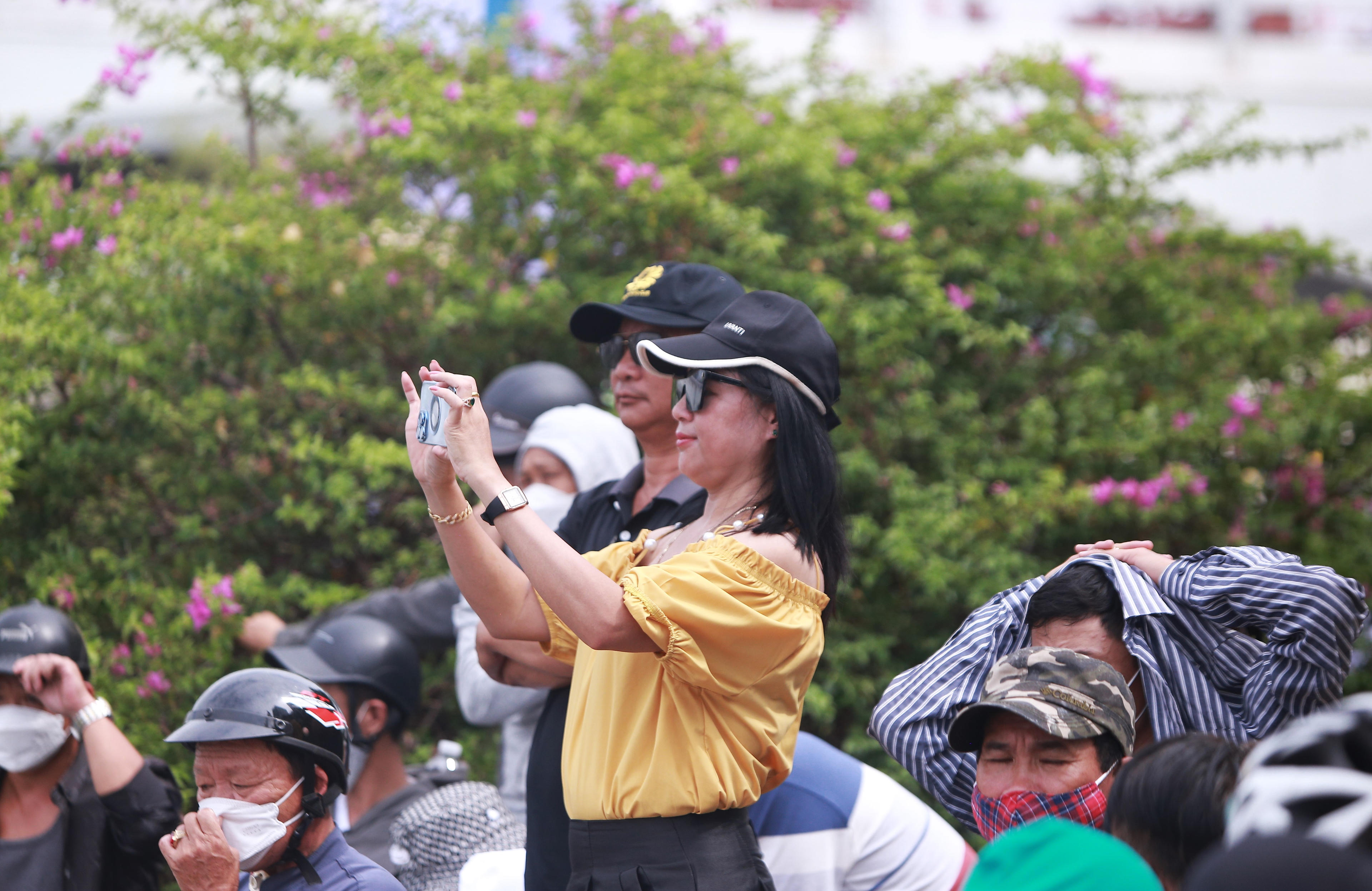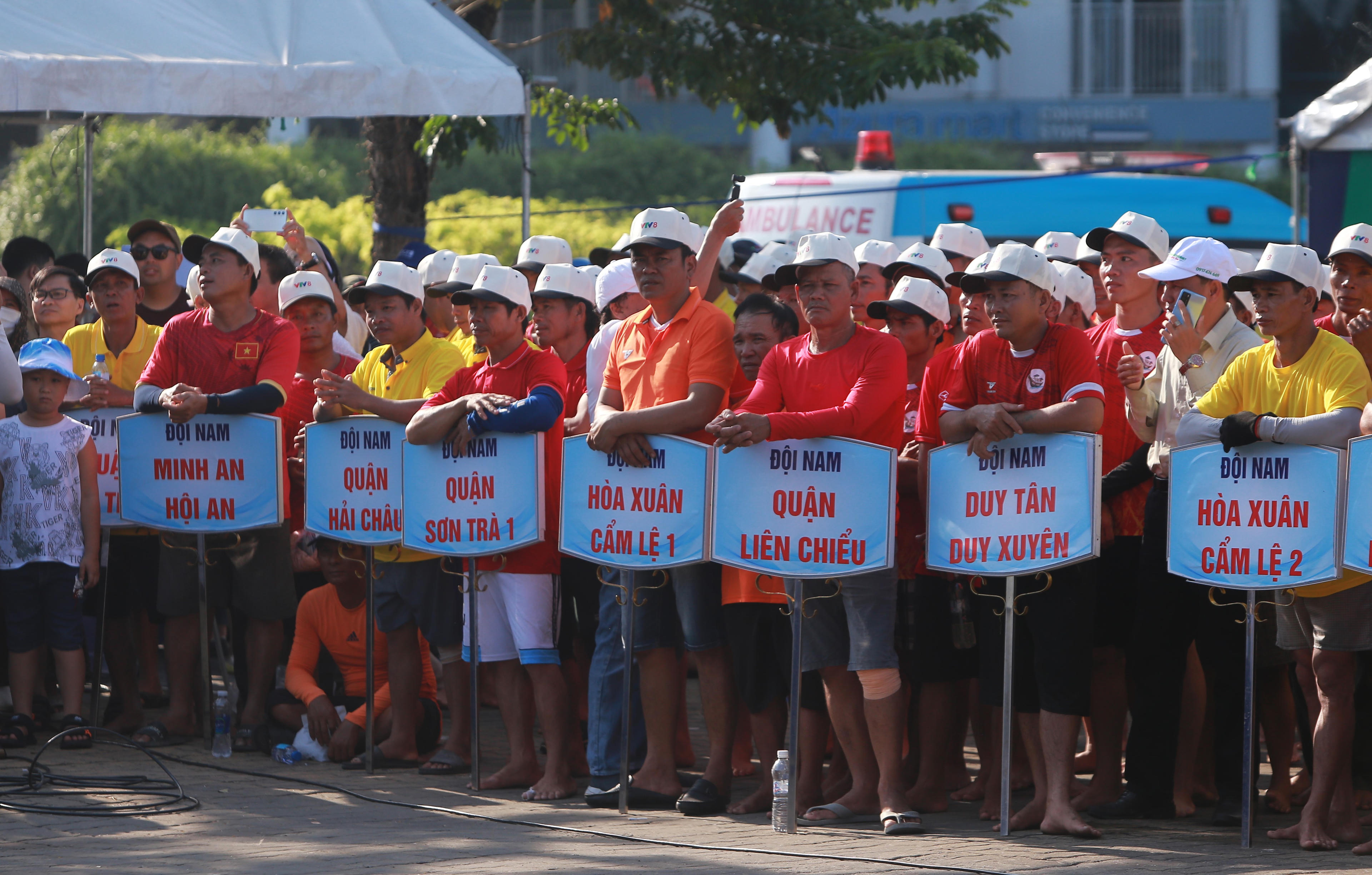 Trên bờ, tiếng reo hò, cổ vũ của người dân và du khách rất sôi động.