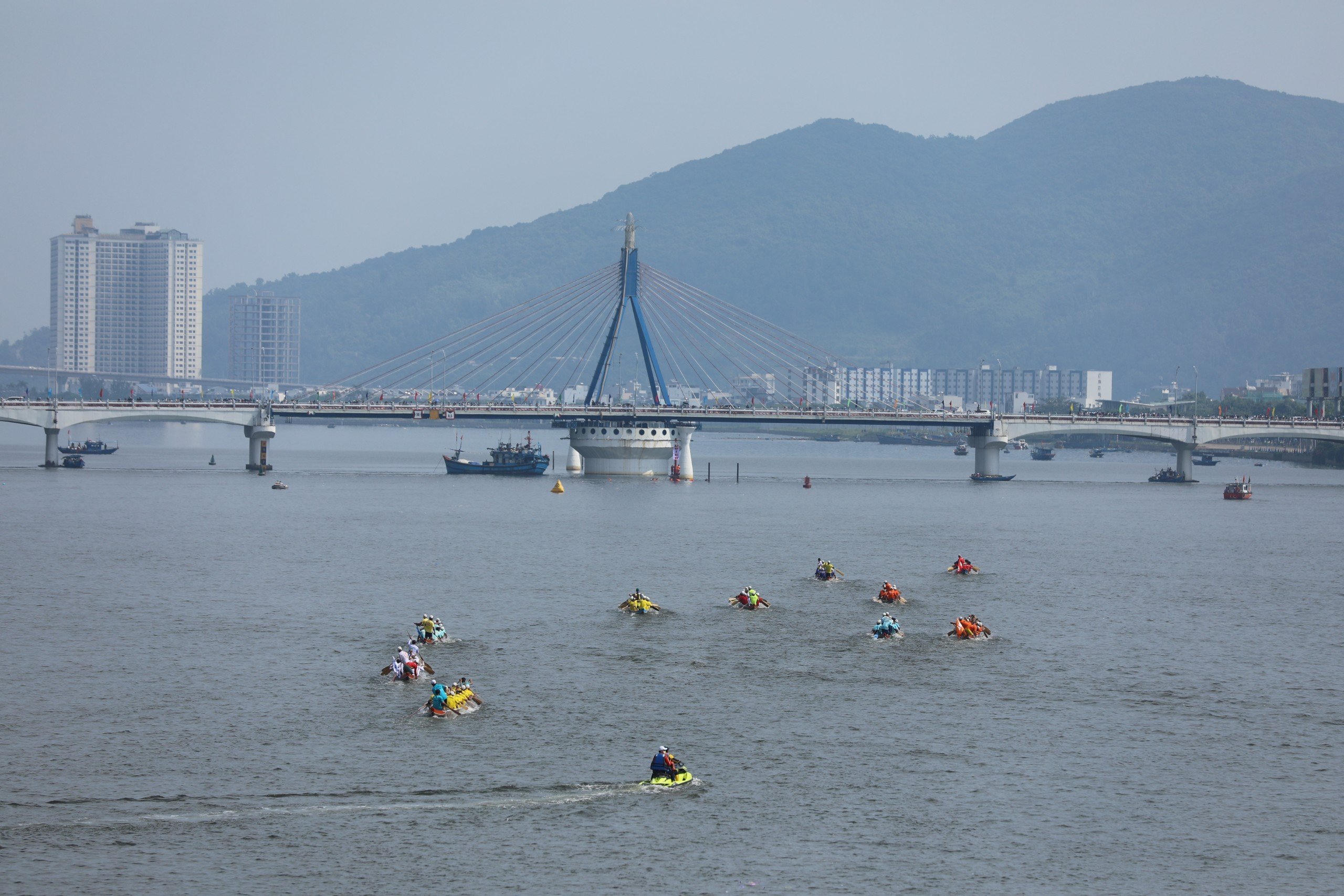 Từ sáng sớm, hàng vạn người dân và du khách đã đứng chật kín hai bên bờ sông Hàn để cổ vũ các đội tham dự lễ hội đua thuyền.