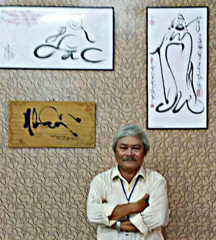 Ông giãi bày: Tôi không bao giờ phân biệt tôn giáo, tín ngưỡng, vì tất cả tôn giáo đều là ánh sáng nhiệm màu của lòng yêu thương. Khởi đầu từ bức thư họa “Giác ngộ” đầu tiên qua hình ảnh của Đức Phật, bức thứ hai là “Từ bi”, tạo hình Phật bà Quán Thế Âm, thì bức thứ ba lại là bức “Bác ái”. Ngoài những bức thư họa ấn tượng, ông cũng có những bức ông già Noel, Lão Tử, Khổng Tử.