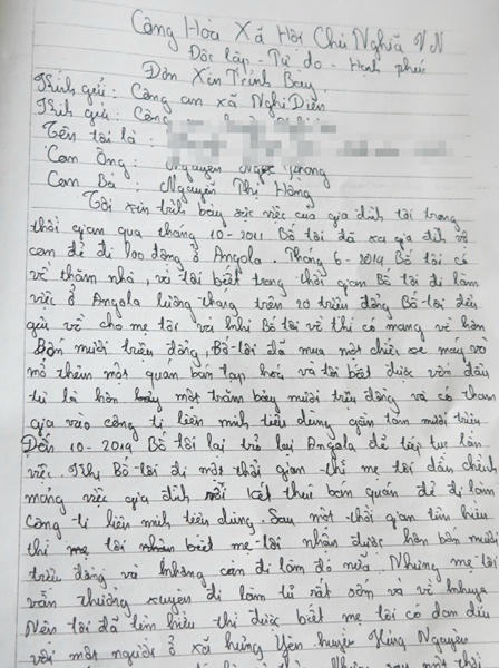 Công an xã đã chuyển đơn và hồ sơ cho Công an huyện Nghi Lộc để tiếp tục điều tra làm rõ.