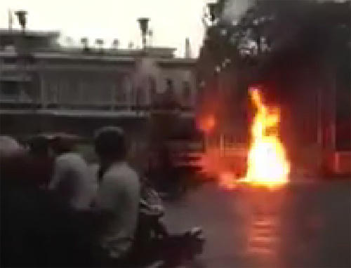 Khoảng 3 phút sau ngọn lửa được dập tắt, người phụ nữ này tử vong tại chỗ.Tại hiện trường, Công an thu giữ 1 cái can loại 5 lít, 1 quẹt ga và một bịch đồ chứa 6 biểu ngữ viết tay phản đối Trung Quốc.