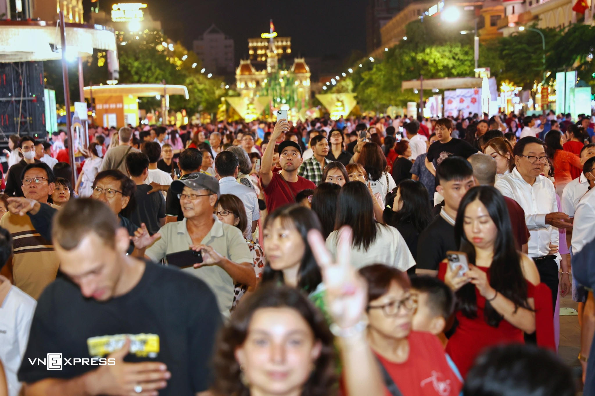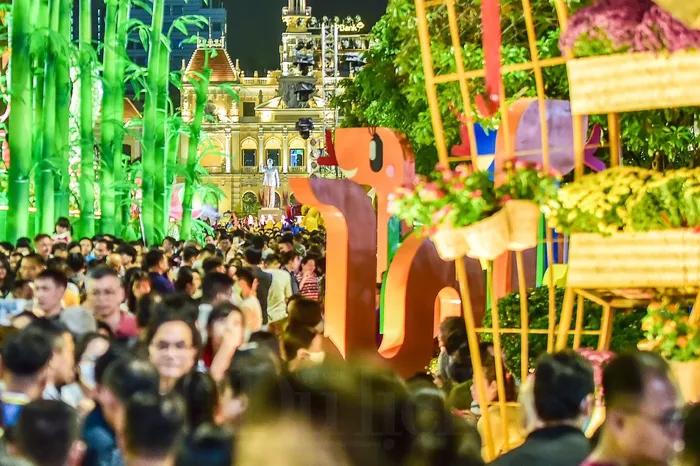 Trước thời khắc chuyển giao năm cũ bước sang năm mới Ất Tỵ 2025, nườm nượp người dân và du khách đổ về khu vực trung tâm TP HCM vui chơi, đón tết. (Ảnh: Tạp chí du lịch) |