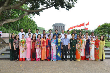 | Đoàn giáo viên cấp III Kim Thành - Hải Dương chụp ảnh kỷ niệm nhân ngày sinh nhật lần thứ 124 của Bác (