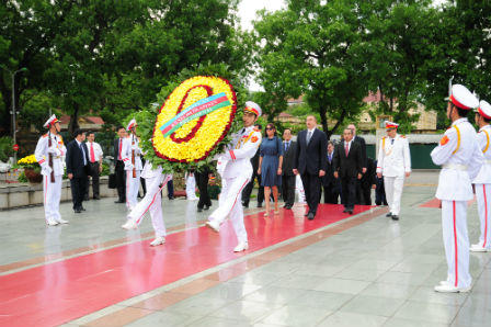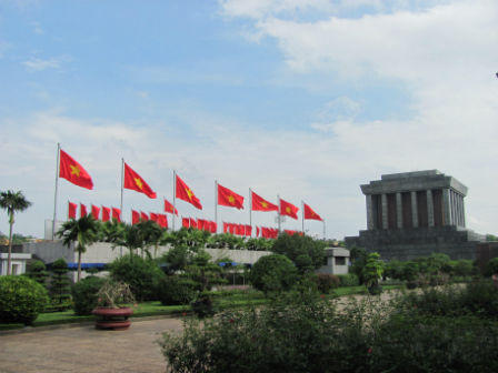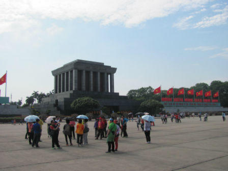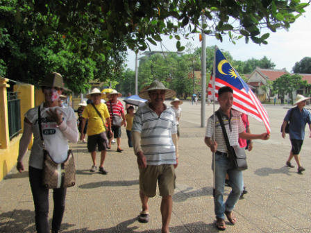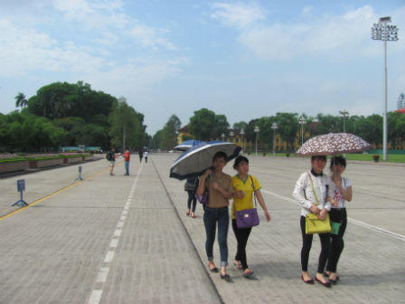 Đoàn khách du lịch Malaysia không quản ngại trời nắng đến tìm hiểu lịch sử của đất nước Việt Nam và xem hình ảnh người dân Việt Nam vào viếng Bác.