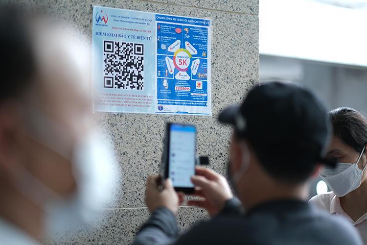 Người dân phải khai báo y tế, đo thân nhiệt, và rửa tay sát khuẩn mới được vào ga.