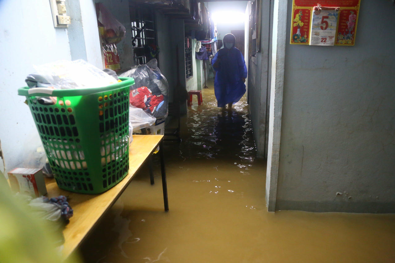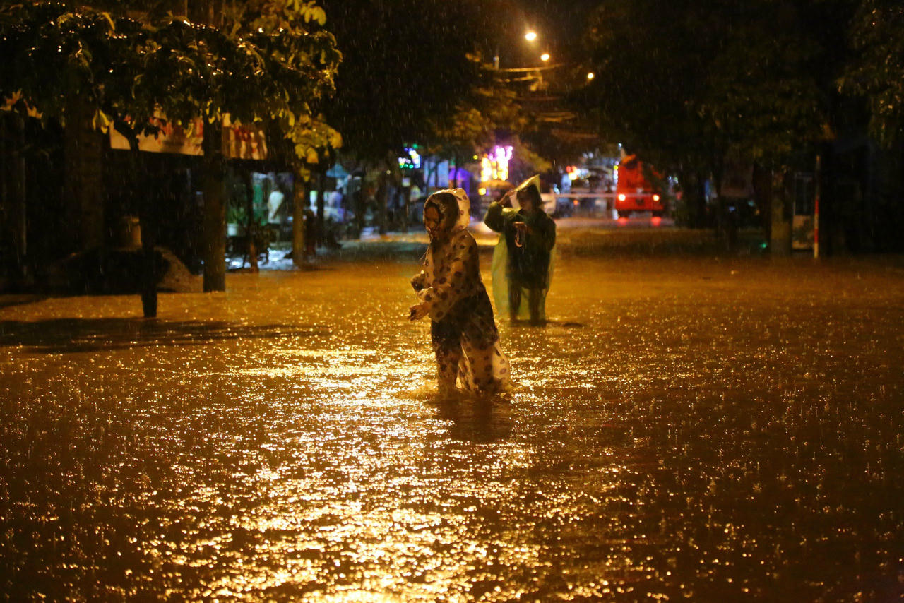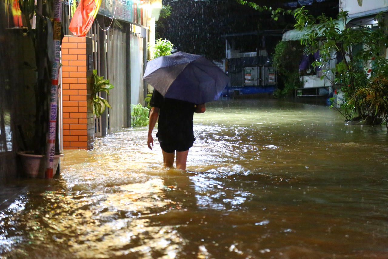 | Khoảng 23h30, nhiều khu vực ở đường Mẹ Suốt ngập sâu từ 0,5 đến khoảng 1m, nước tràn vào nhà dân. |