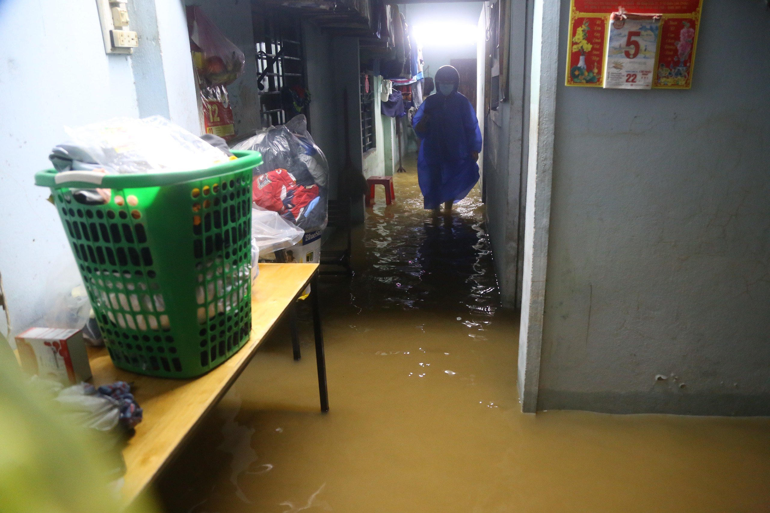 (PLVN) - Rạng sáng 8/11, mưa lớn tiếp tục đổ xuống, nước lũ cuồn cuộn tràn về khu dân cư, người dân vùng "rốn lũ" trên đường Mẹ Suốt (phường Hòa Khánh Nam, quận Liên Chiểu, Đà Nẵng) lại tất tả dọn đồ "chạy lụt".