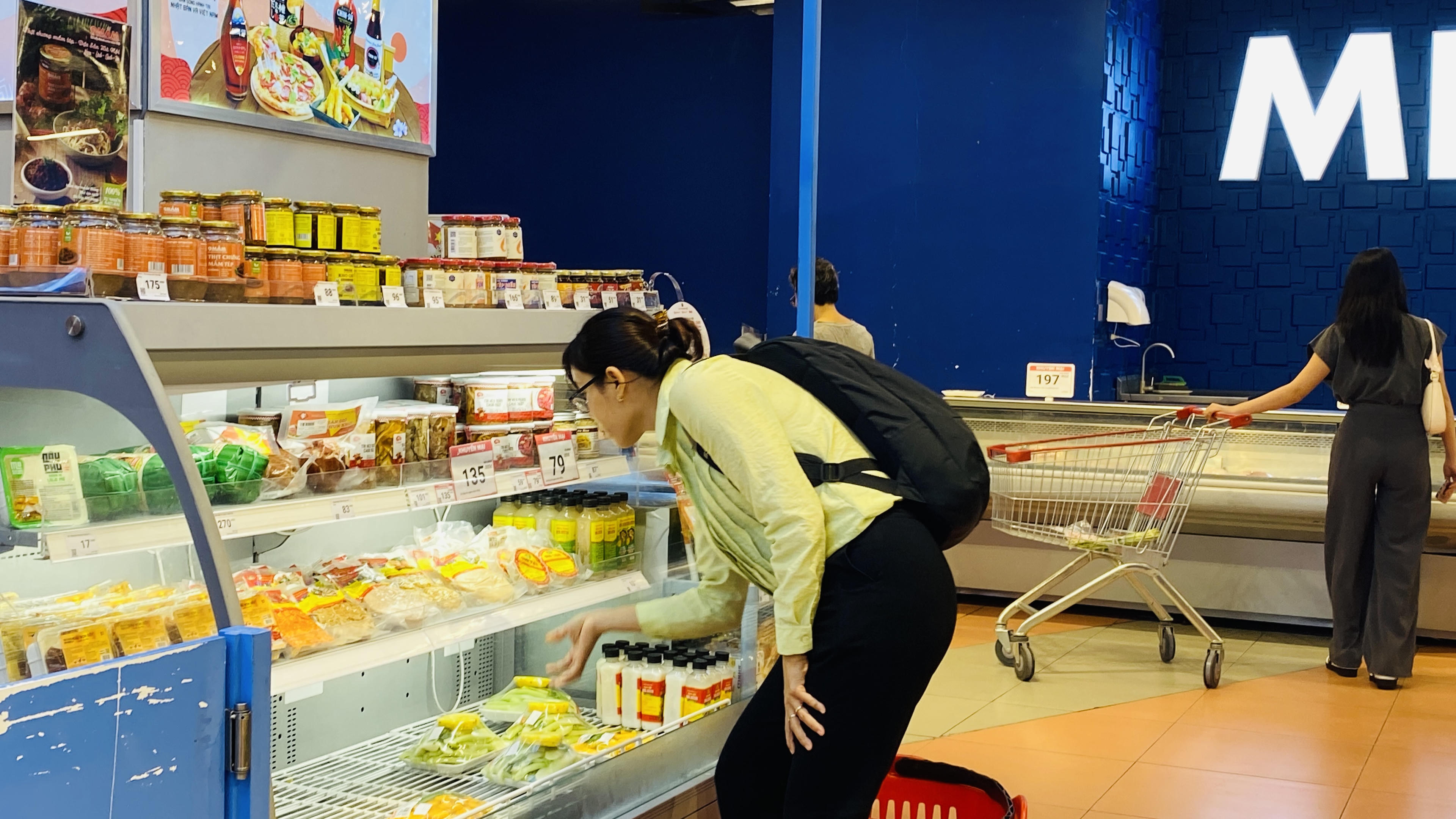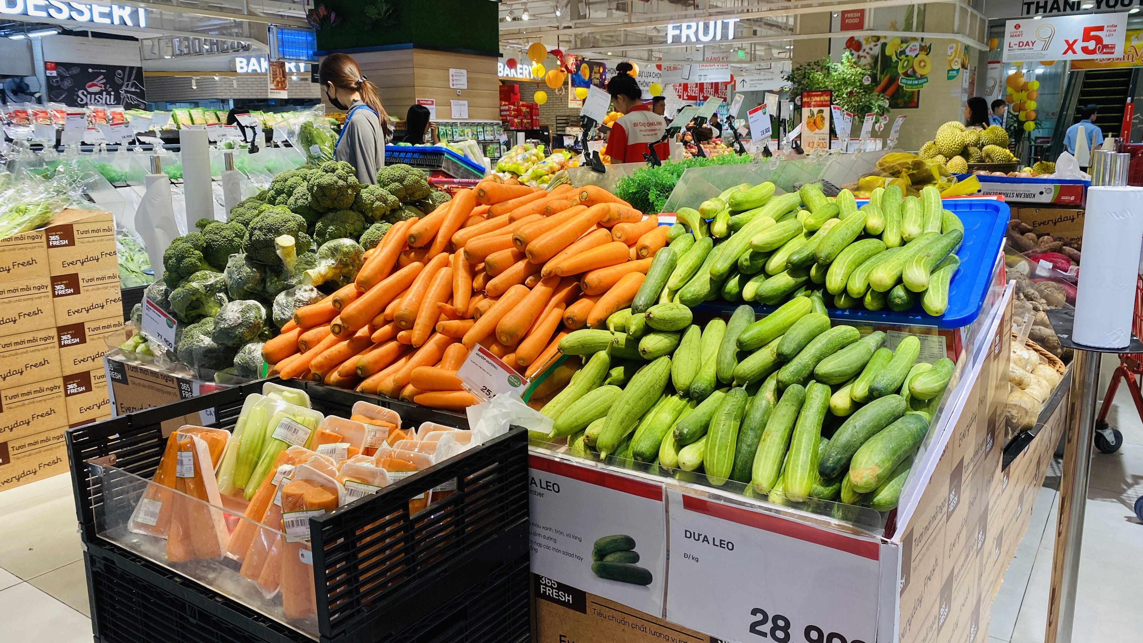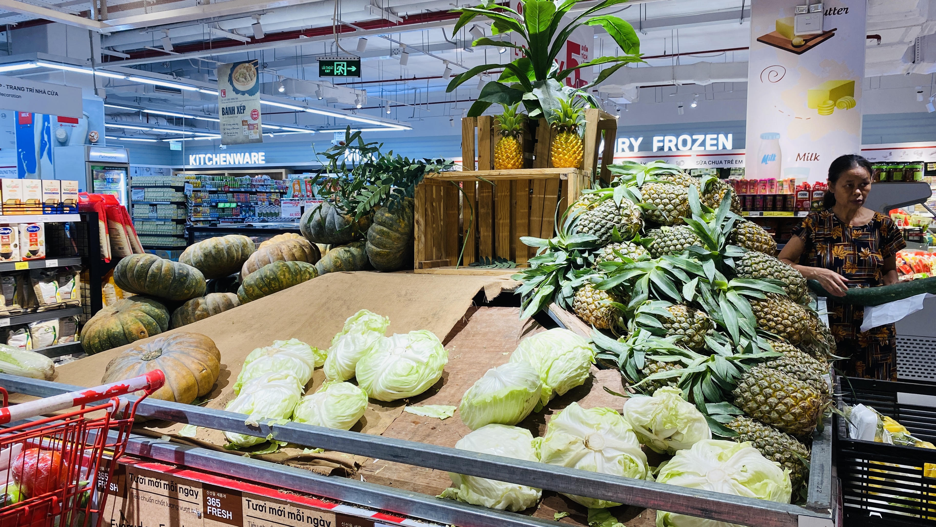 Một nhân viên trong siêu thị cho biết: "Hiện giờ bên em đã hết sạch rau quả rồi ạ, em cũng không biết lúc nào bổ sung hàng mới. Hôm nay mọi người mua đông quá".