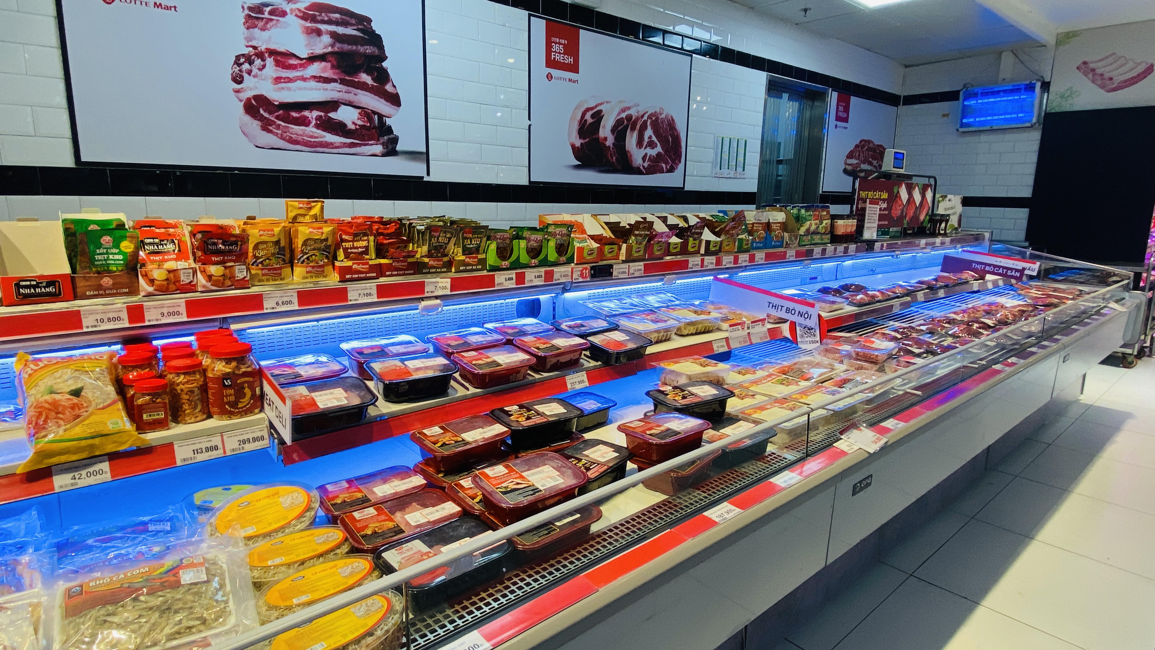 Tại siêu thị Lottemart (Cầu Giấy), quầy rau tươi cũng có vẻ vơi bớt nhiều hơn so với ngày thường. Một số loại rau như: rau muống, cải ngọt, cải bẹ xanh... đã hết hàng. Tuy nhiên, các loại rau khác như: dưa chuột, súp lơ, bắp cải, bí xanh vẫn còn. Tương tự các loại thịt vẫn còn khá nhiều trên kệ.