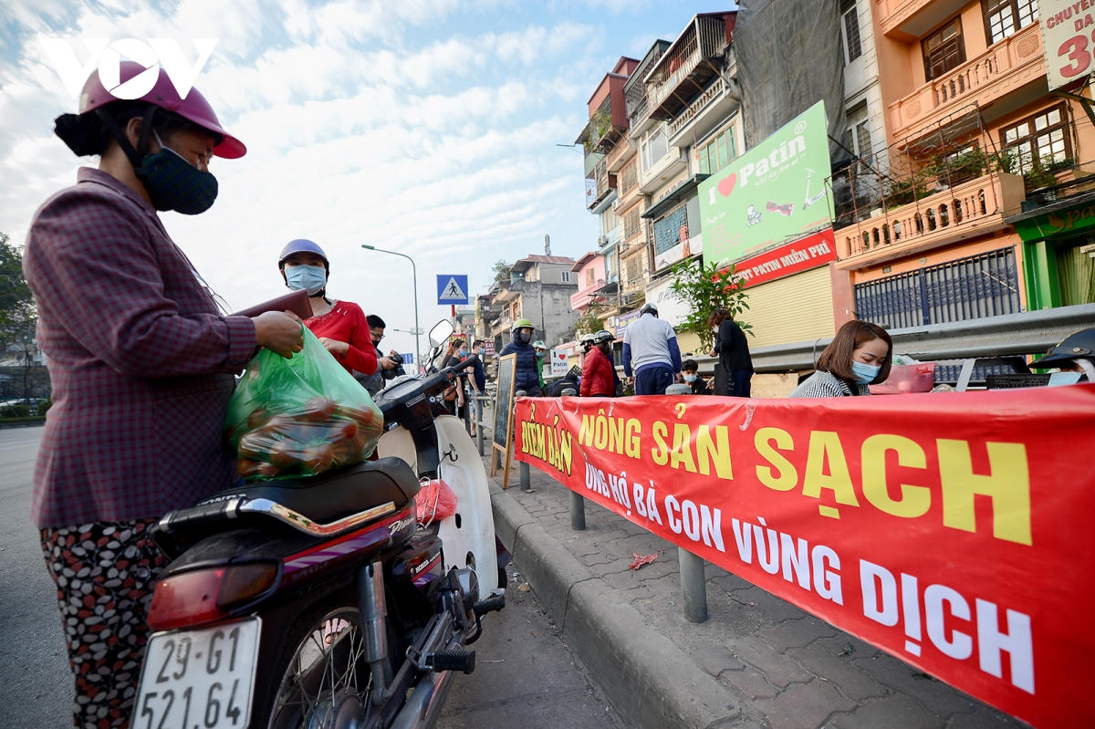 Các mặt hàng nông sản sạch gồm cà chua, su hào, bắp cải, ổi, cà rốt… đã qua kiểm dịch an toàn trước khi đưa đi tiêu thụ. Xe đi qua các chốt kiểm dịch đều được phun khử khuẩn, lái xe mặc đồ bảo hộ đầy đủ. Xe chở nông sản đến điểm tập kết ở huyện Quế Võ (Bắc Ninh) sẽ bốc hàng chuyển sang xe tải Hà Nội rồi chở đến điểm bán hàng.