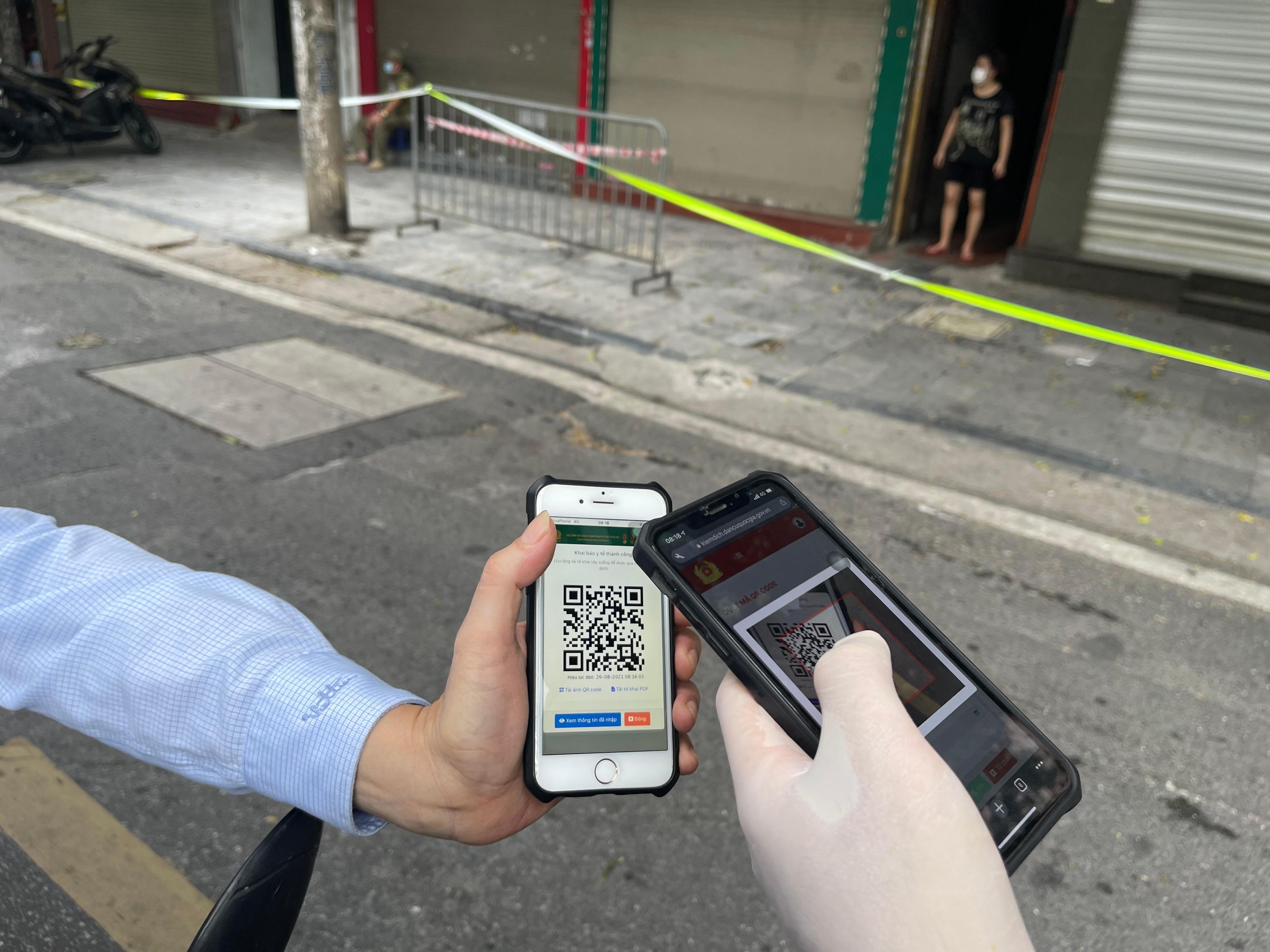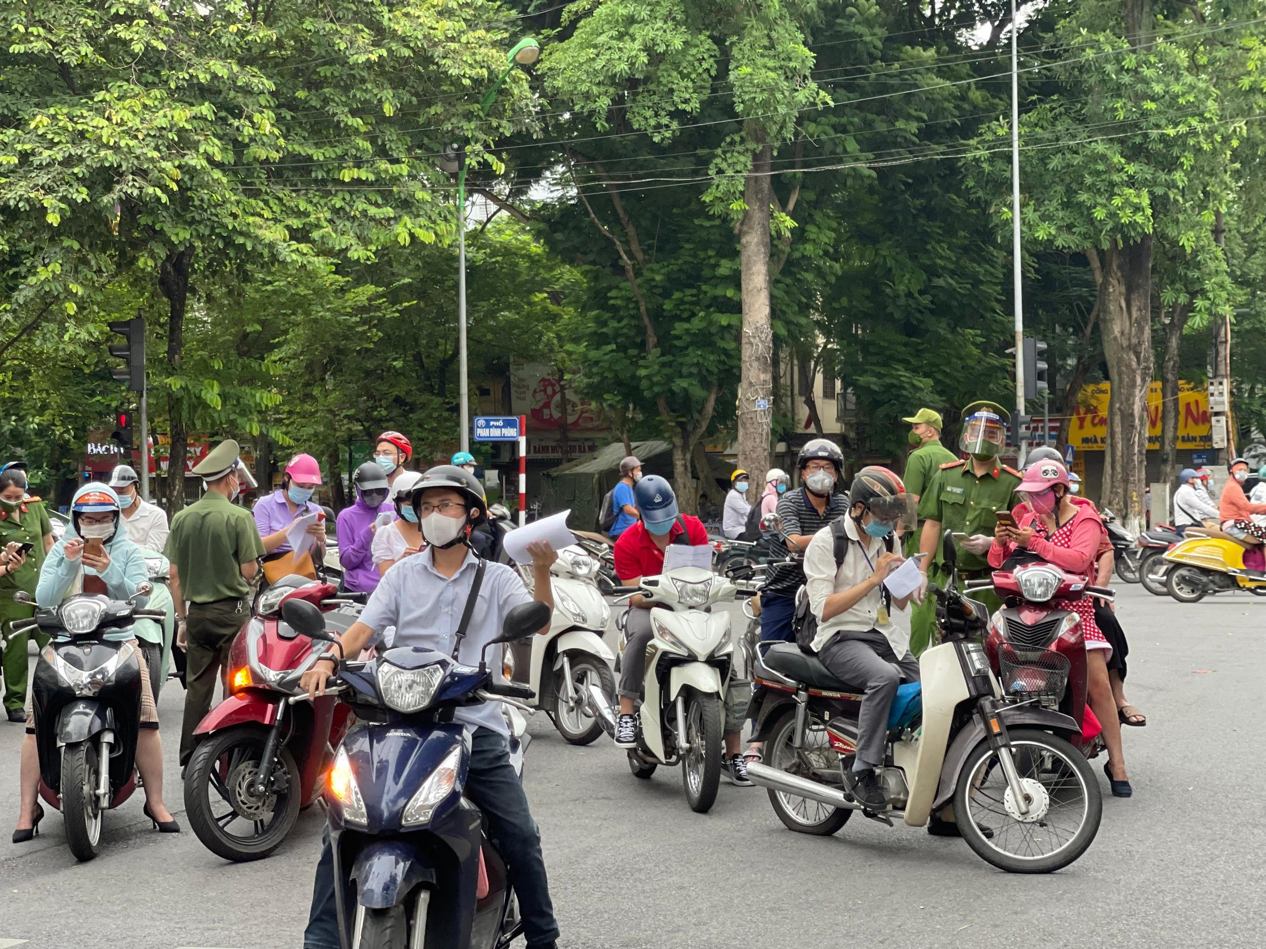 (PLVN) - Sáng 23/8, tại Ngã tư Hàng Cót – Phan Đình Phùng; Bốt Hàng Đậu, lực lượng chức năng yêu cầu người dân khi di chuyển qua cần khai báo trên trang https://suckhoe.dancuquocgia.gov.vn/. Khá nhiều người bất ngờ và lúng túng dừng lại khai báo, tiềm ẩn nguy cơ lây nhiễm dịch bệnh.