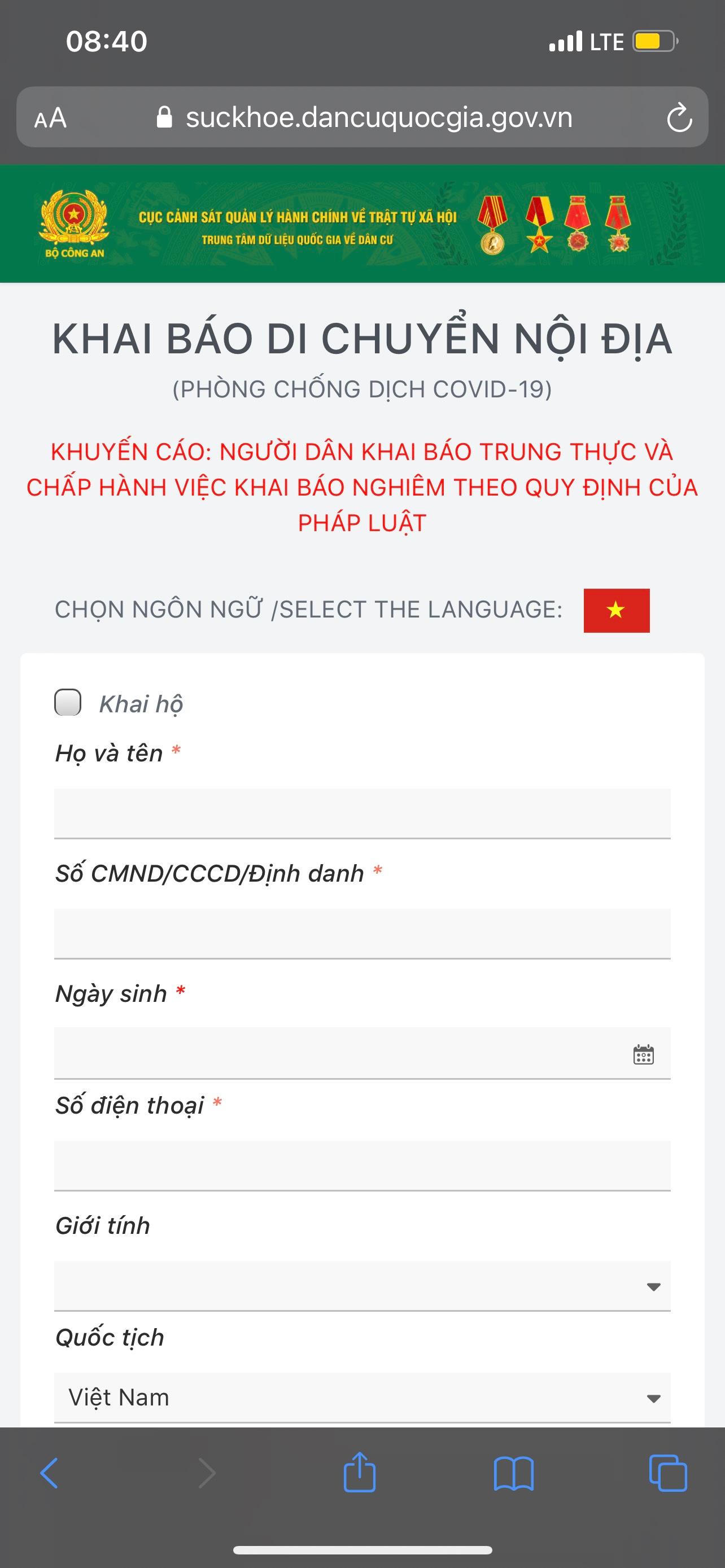 Người dân được yêu cầu khai báo thông tin trên website: https://suckhoe.dancuquocgia.gov.vn/. |