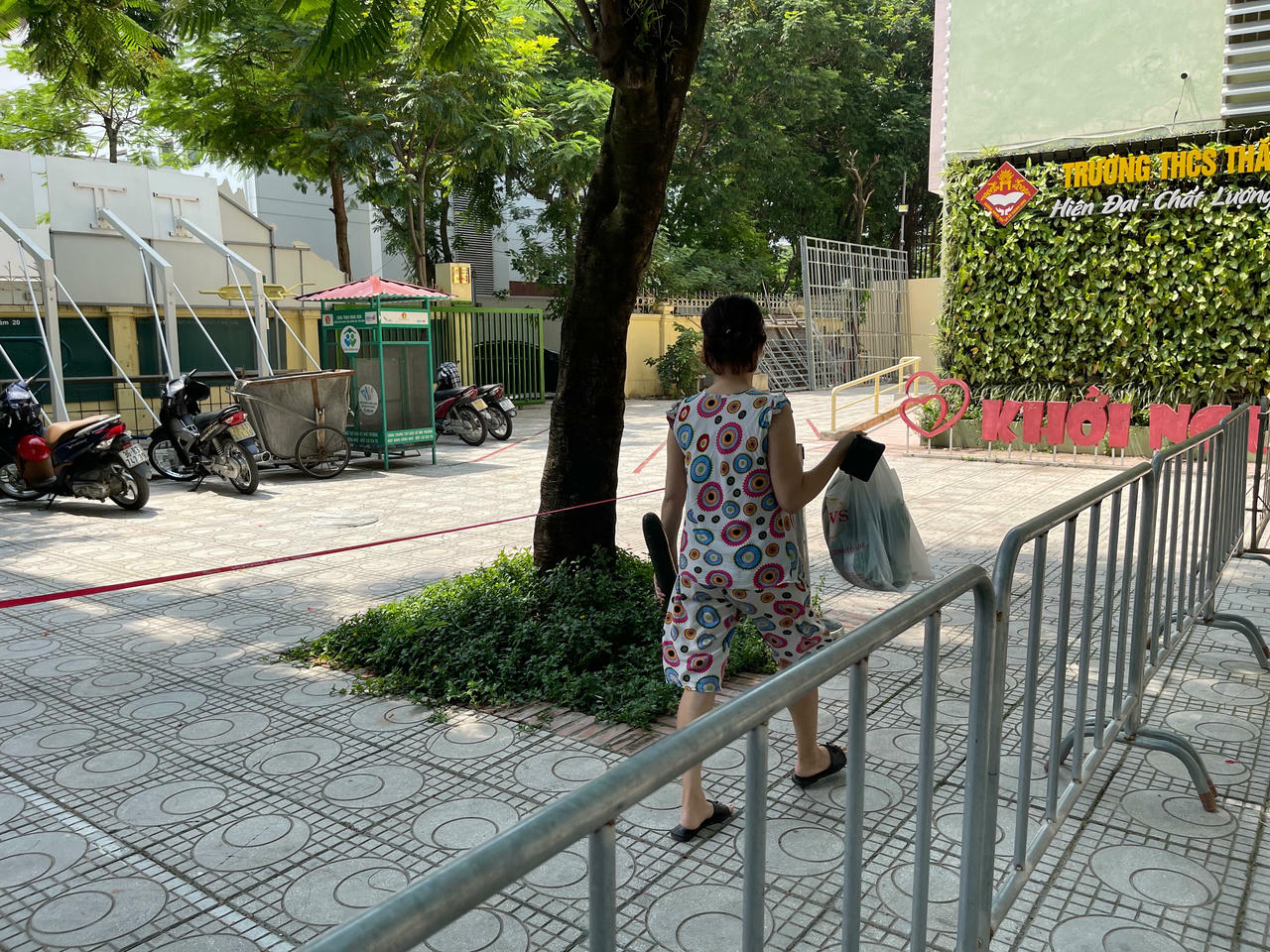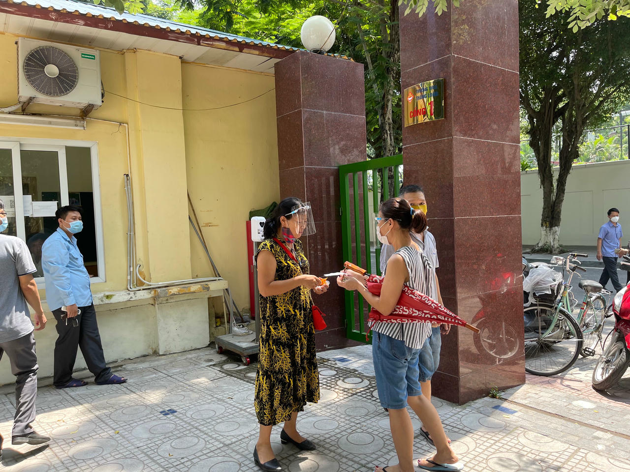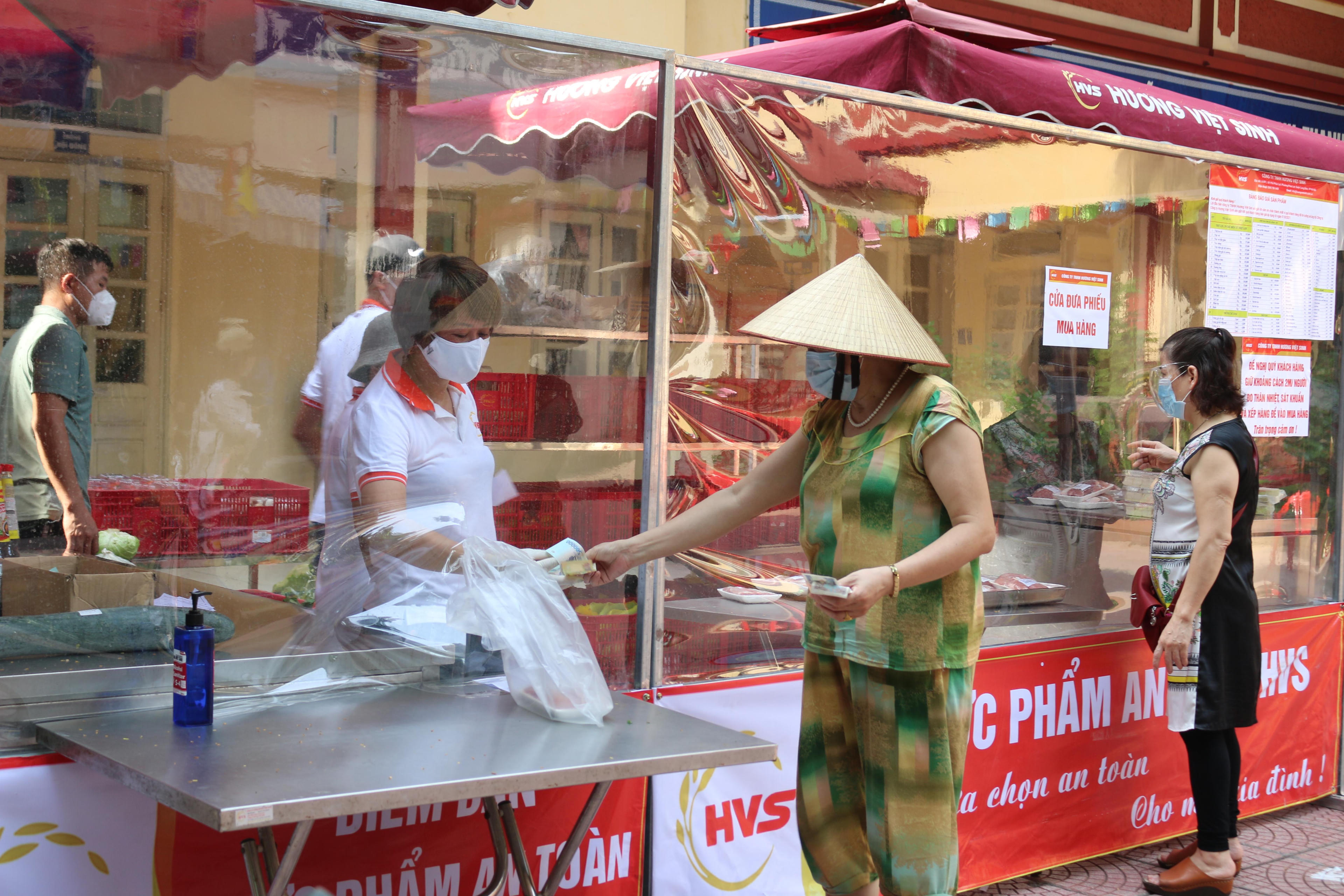 Tại điểm bán hàng lưu động trường THCS Phúc Xá, phường Phúc Xá, quận Ba Đình, từ 6h30 lực lượng chức năng và lực lượng tình nguyện hỗ trợ người dân mua hàng tại điểm này.