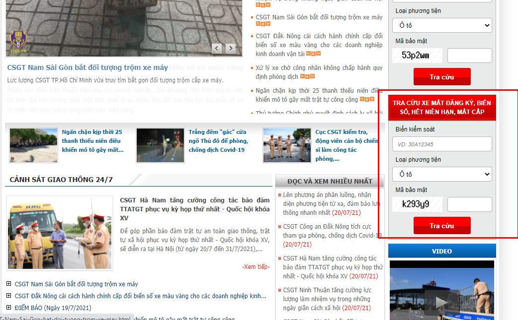 Từ 21/7, Cục CSGT mở chuyên mục “Đăng ký, khai báo phương tiện” trên Cổng Thông tin điện tử (csgt.vn) để hướng dẫn người dân hoàn thiện hồ sơ, thủ tục, trình tự đăng ký, lệ phí đăng ký xe, cũng như địa điểm, số điện thoại của từng điểm đăng ký xe trên toàn quốc.