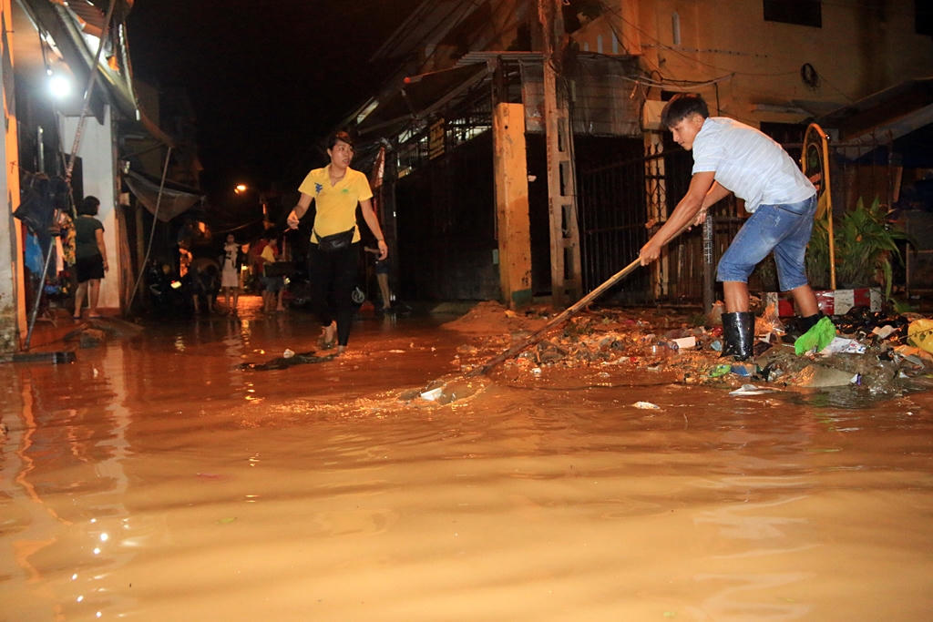 Sau 3 ngày bị “nhấn chìm” trong biển nước, lũ vừa rút, người dân đã tất bật để quét dọn nhà cửa, đường phố.