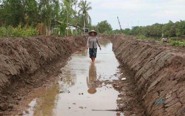 Những cơn mưa lớn kéo dài trong những ngày qua, việc đi lại của người dân khu vực công trình càng thêm vất vả. Trong khi người dân chờ đơn vị thi công đẩy nhanh tiến độ thực hiện dự án… tuy nhiên, người dân trong vùng dự án vẫn phải lội sình hàng cây số với muôn vàn khó khăn, bất tiện. Cùng với đó, các hộ dân nuôi tôm nơi đây thì chỉ mong mỏi con tôm vẫn sinh trưởng bình thường; chứ bất trắc, tôm “bể” không biết xoay sở như thế nào?.