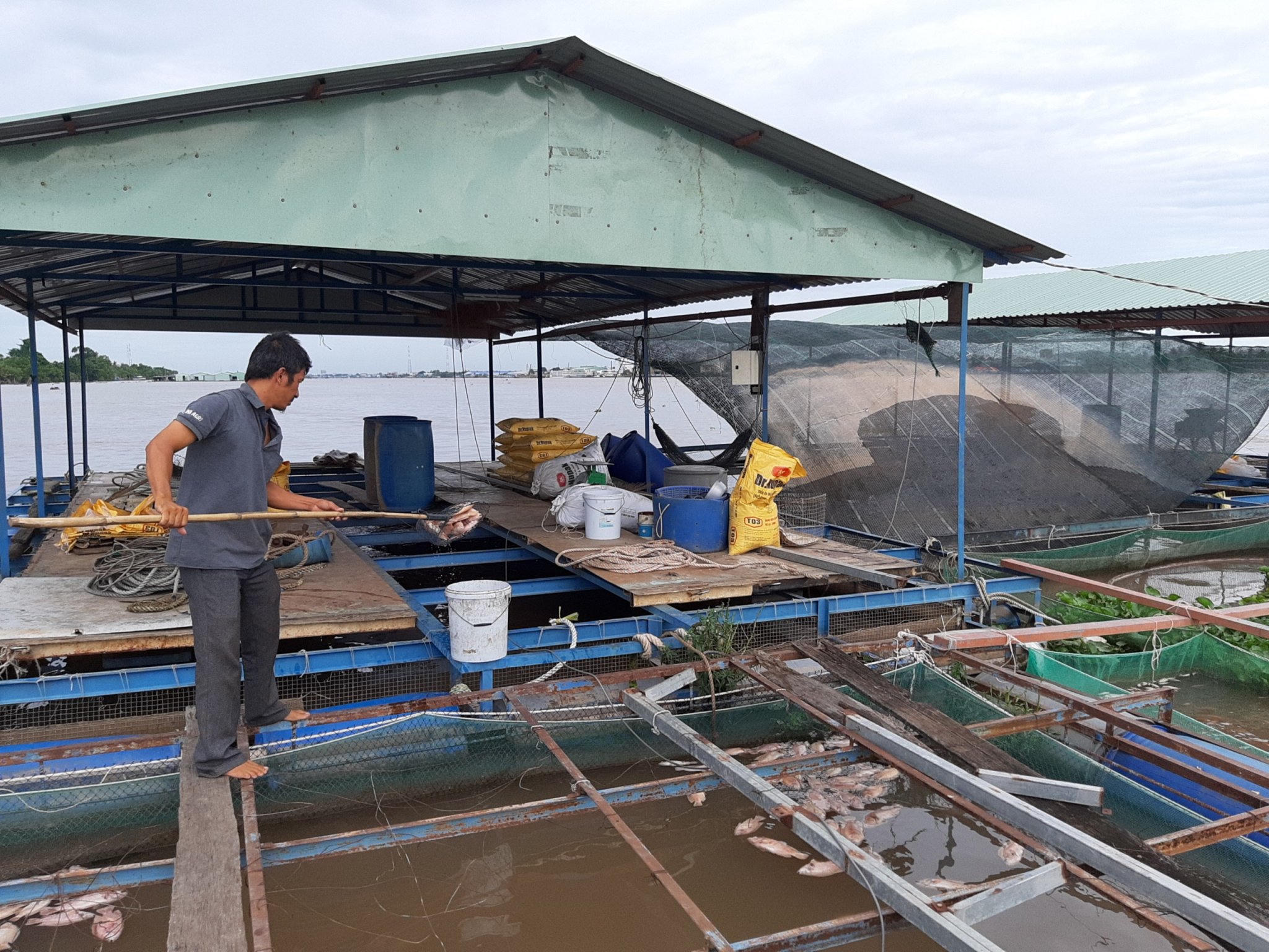 Người dân khốn đốn vì cá bè trên sông Tiền chết bất thường