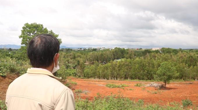 Khi đi thăm đất ông K.Mời thấy tất cả các cây thông, keo, tràm mà ông đã trồng hàng chục năm đã bị chặt phá, đốt cháy hết.