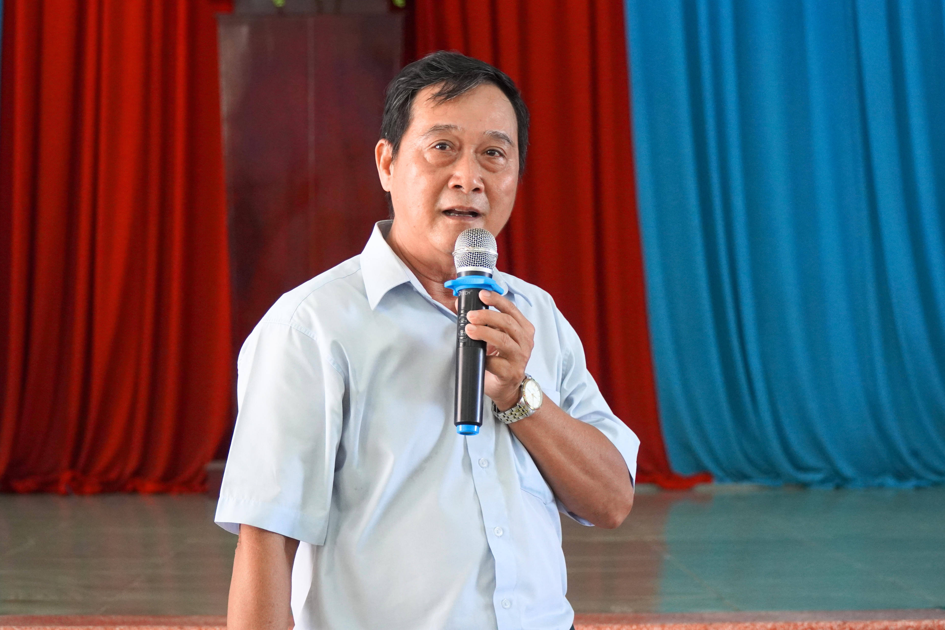 Ông Trần Văn Kính - Phó GĐ BHXH thị xã Cai Lậy, Phó trưởng Ban chỉ đạo thường trực chia sẻ, mô hình điểm truyền thông khách hàng tại xã Tân Phú với cách làm gần gũi, giải đáp tất cả các thắc mắc của bà con về BHXH tự nguyện.
