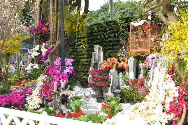 | Hơn 30 cây cùng hàng ngàn cành hoa anh đào đã được các công nhân chăm chút chuẩn bị trong vài ngày trước lễ khai mạc. Ảnh Hồng Anh |