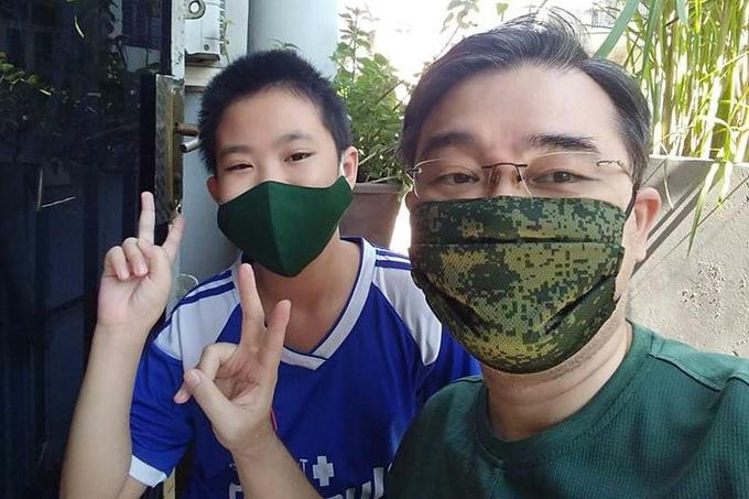 Cậu con trai 11 tuổi may mắn không bị nhiễm bệnh từ mọi người trong nhà. Những ngày qua, dù ở chung nhà nhưng hai cha con cách ly với nhau. Con trai thường nói với bố: "Lúc nào hết bệnh nhất định ba phải ôm con". Ảnh: Nhân vật cung cấp.