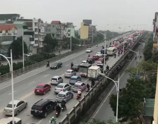 Vụ tai nạn vào đầu giờ cao điểm sáng khiến cầu Vĩnh Tuy trong tình trạng ùn tắc nghiêm trọng. Đến 9h sáng, tình hình vẫn chưa được cải thiện. Nhiều người đi xe buýt đã phải xuống để đi bộ qua cầu.