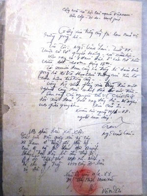 Ông Lán mở chiếc tủ nhỏ, lấy cho PV xem rất nhiều giấy tờ, như “Đơn xin canh giữ đê biển”, “Lệnh cho phép canh giữ đê biển” được cất giữ rất cẩn thận. Ông Lán quý những giấy tờ đó lắm vì nhờ thế mà ông được bảo vệ bờ biển đến ngày nay.