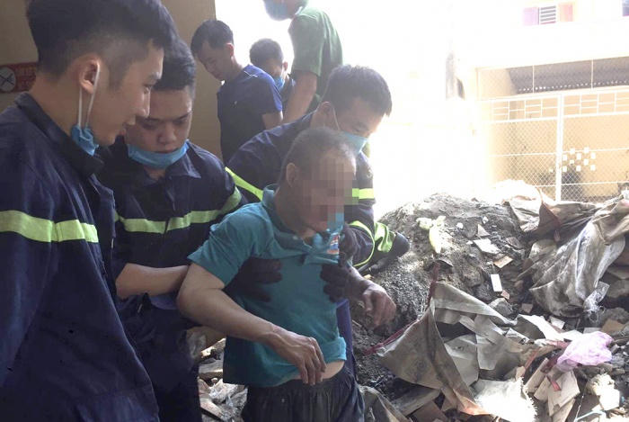 Ngay sau đó, lực lượng chức năng đã cho phá bỏ một phần bức tường nhà số 43 đường Trần Phú. Sau khoảng 30 phút, nạn nhân đã được đưa ra ngoài an toàn.