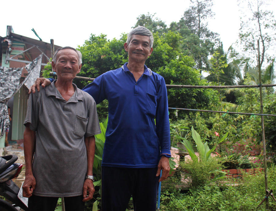 | Ông Bé (trái) và ông Nguyễn Văn Mười (63 tuổi) trong nhóm từ thiện nấu nước bông sen trắng. Ảnh: Thanh Nghi. |