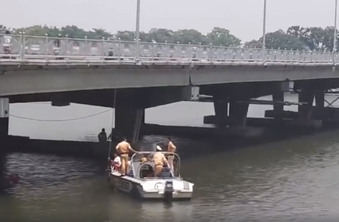 Theo các nhân chứng, vào khoảng 10h15 ngày 17/5, nhiều người hoảng hồn phát hiện người đàn ông chưa rõ danh tính ôm một cháu bé lao từ trên cầu Phú Xuân xuống sông Hương tự tử.