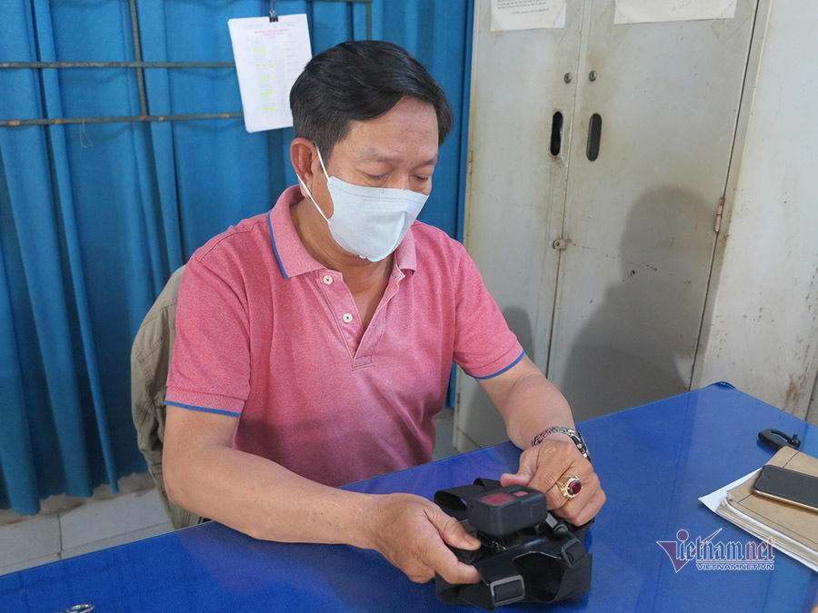 | Ông Nguyễn Đình Lũy kiểm tra chiếc máy quay lén khi về trụ sở khu phố 2 nghỉ trưa. |