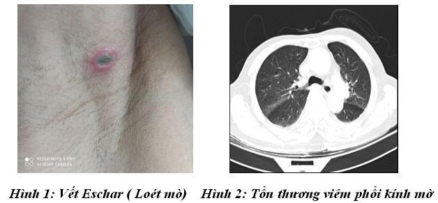 Sau khi nhập viện người bệnh được chỉ định các xét nghiệm cấp cứu, chụp CT ngực không tiêm thuốc cản quang. Kết quả cho thấy trên da vùng hố nách bên phải có 1 vết loét đáy khô sạch màu đen, không nổi ban, hạch không to, sốt cao 38,5 độ kèm mệt mỏi.