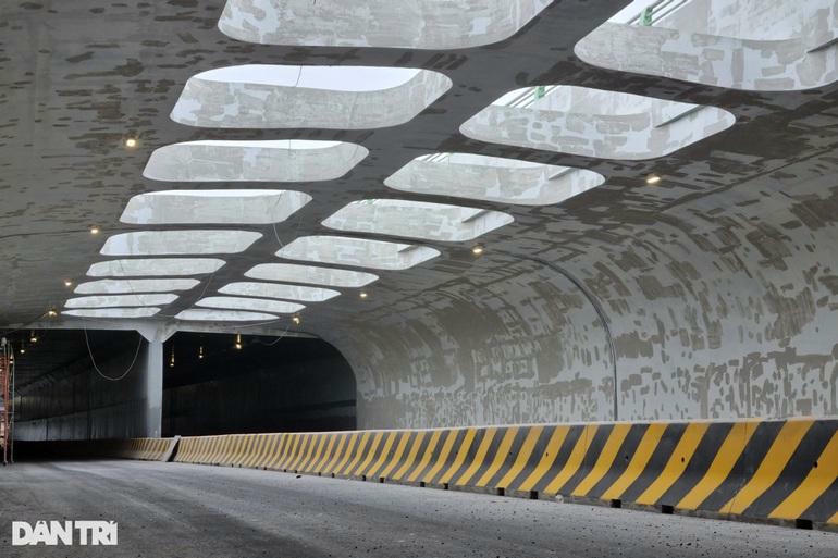 Hầm chui có chiều dài 900 m, được thiết kế các ô vuông giếng trời độc đáo, có thể lấy ánh sáng tự nhiên từ trên xuống.