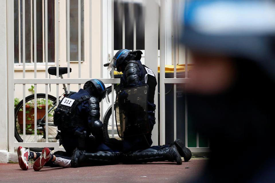 Các nhân viên cảnh sát bắt giữ một người biểu tình tại Paris (Ảnh: REUTERS). |