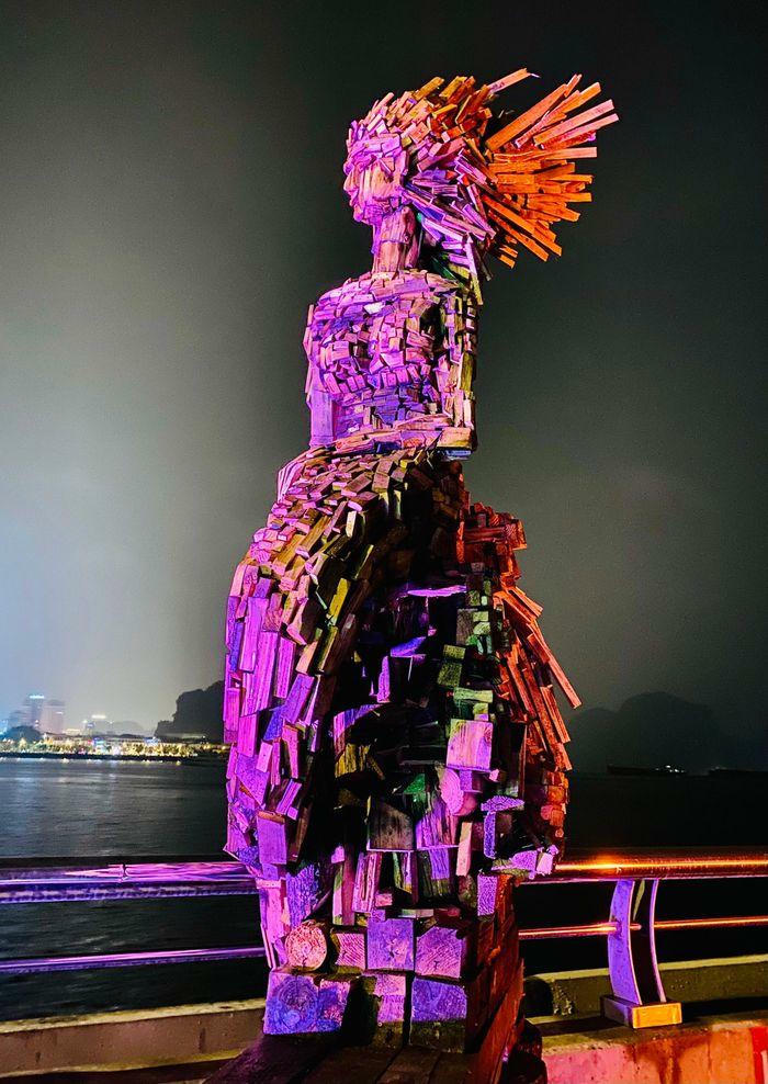 Tác phẩm nghệ thuật được làm từ gỗ tái chế. |